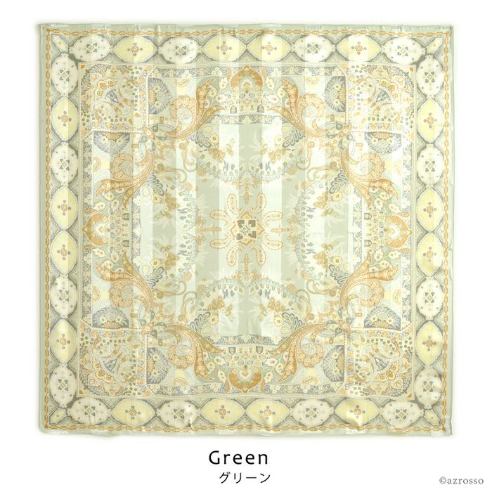 手捺染で仕上げたスカーフは肌触りと光沢を含む上質な仕上がりになります。また、裏表の区別がつきにくいところも特徴です。