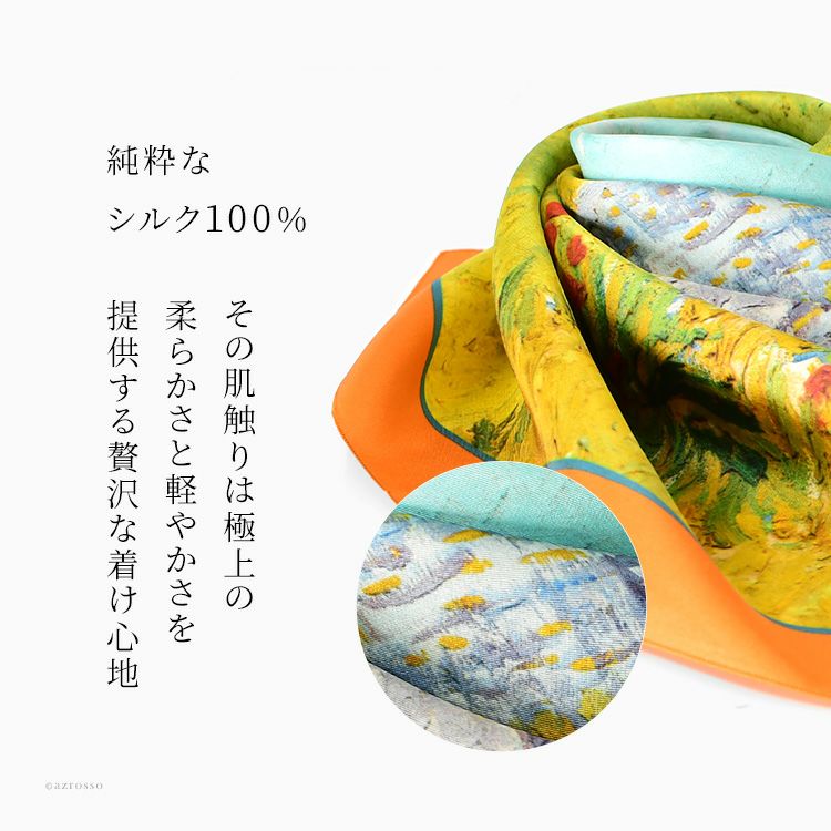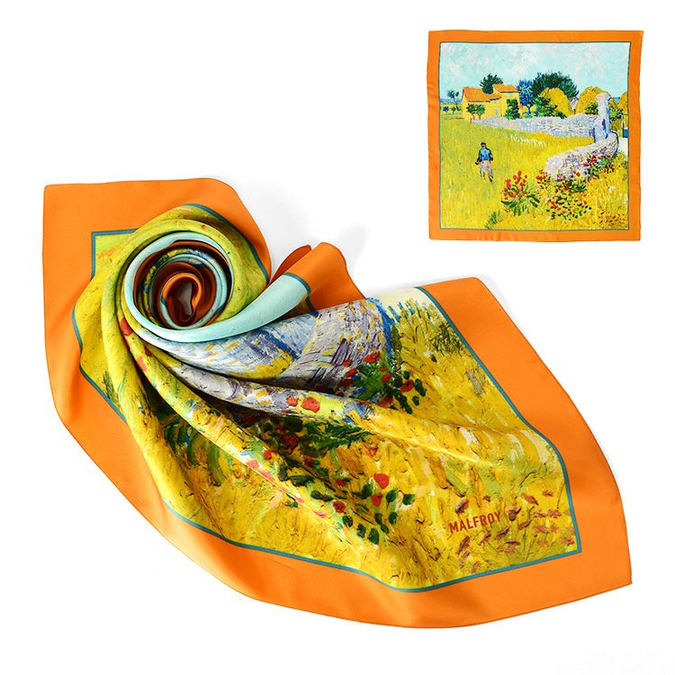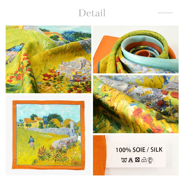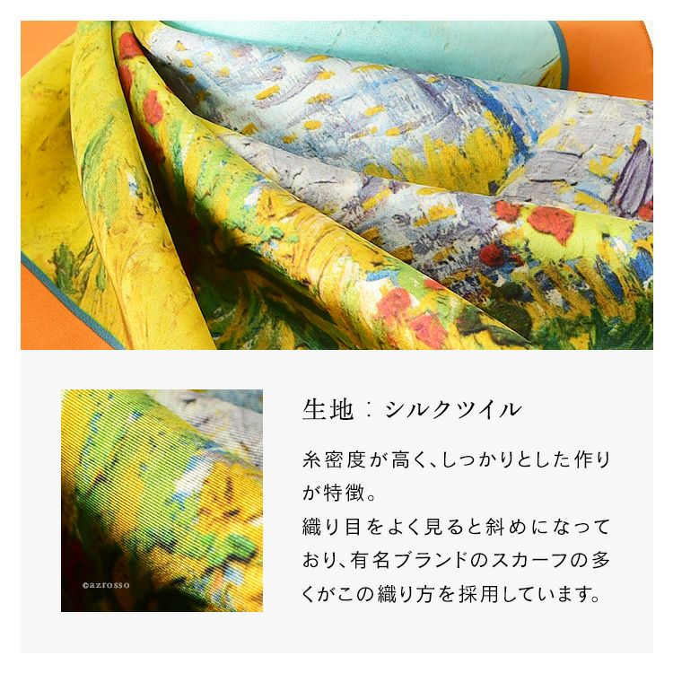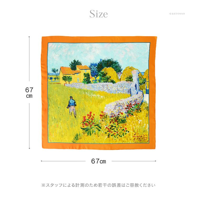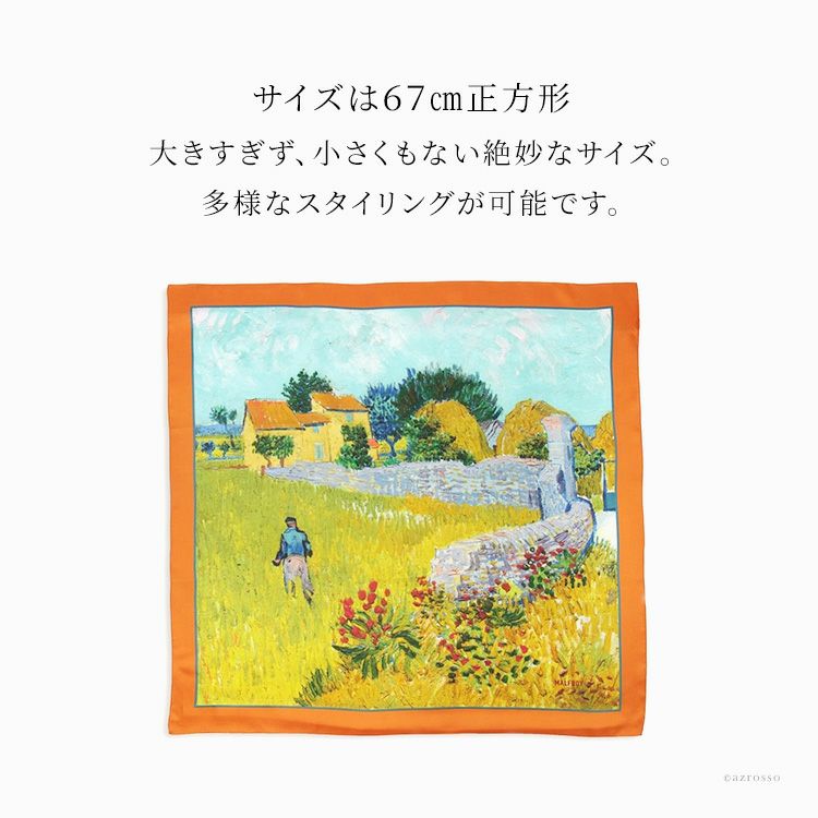 絵画 スカーフ シルク100% ツイル 薄手 正方形 67cm×67cm 名画 ゴッホ プロヴァンスの農家 フランス製 ブランド