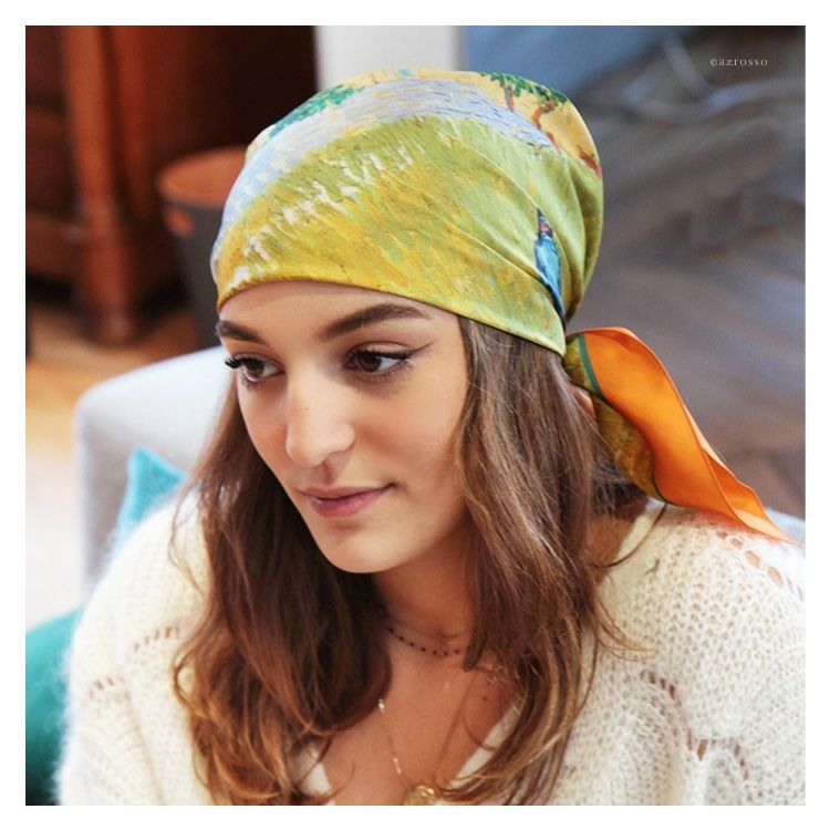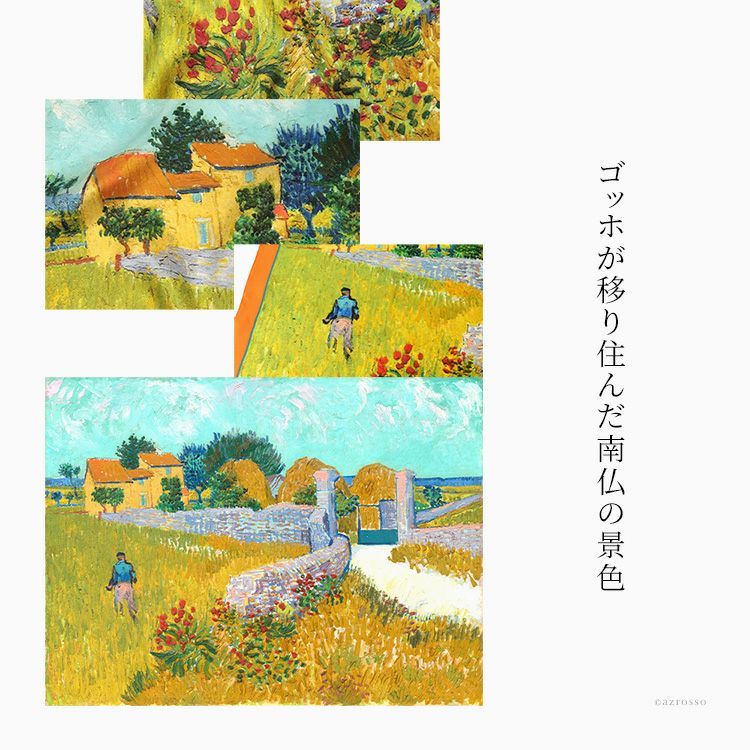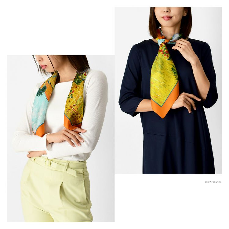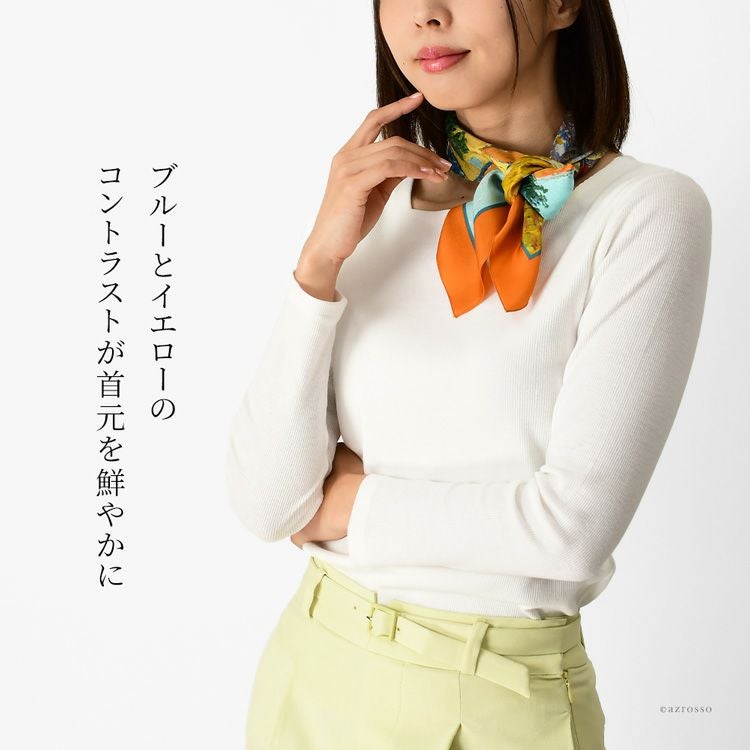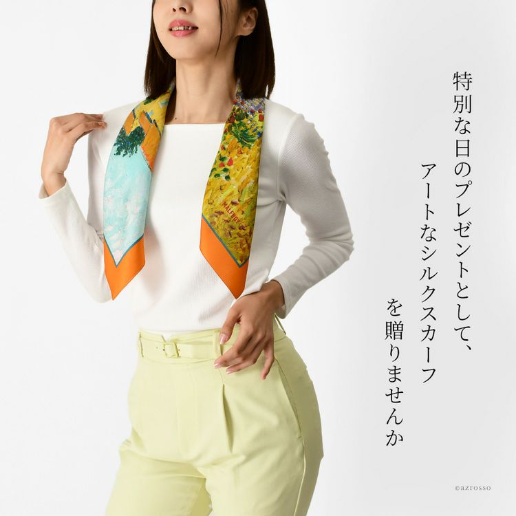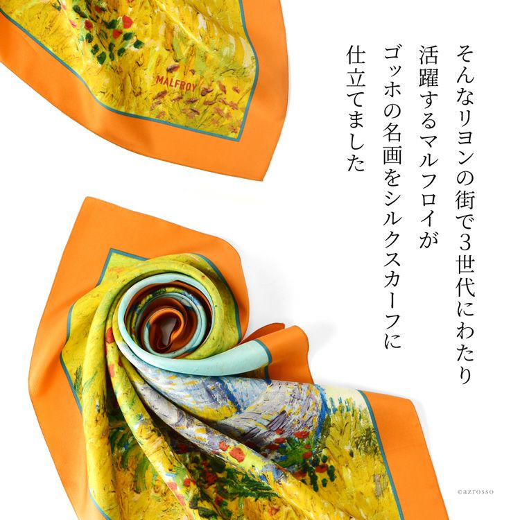 絵画 スカーフ シルク100% ツイル 薄手 正方形 67cm×67cm 名画 ゴッホ プロヴァンスの農家 フランス製 ブランド