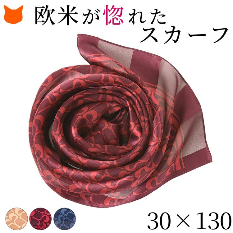 ハート サテン シルクスカーフ 日本製 横浜スカーフ レトロな長方形シルクスカーフ フォーマル ビジネス カジュアルスタイルにも