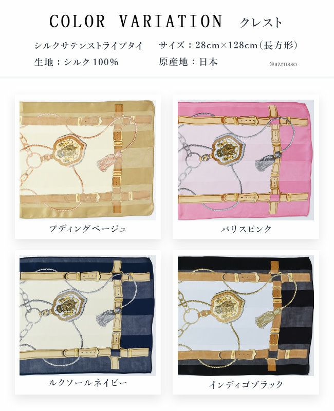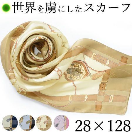 スカーフ シルク サテン ストライプ タイ 紋章 柄 ベルト 28x128 長方形 日本製 ブランド