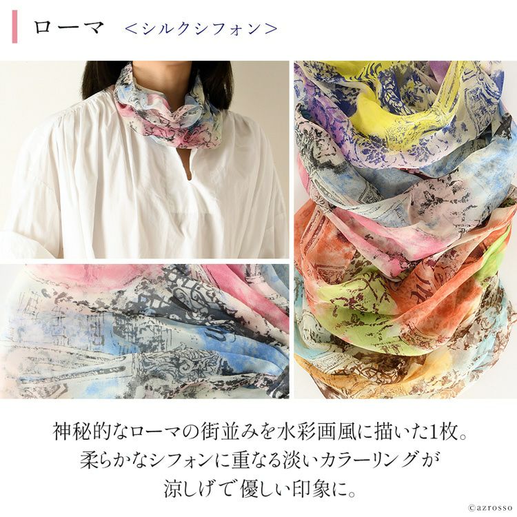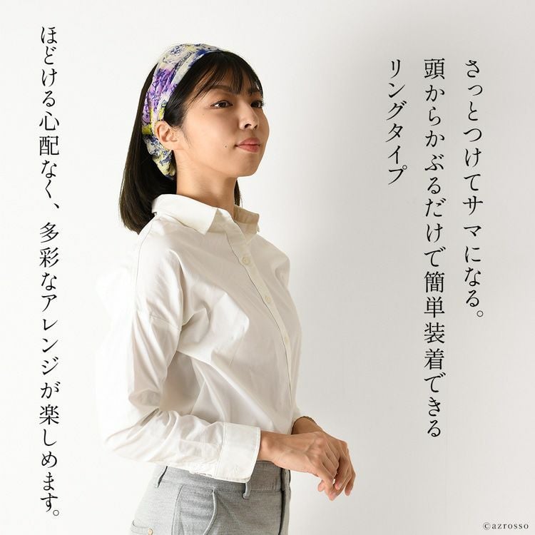 横浜スカーフ ローマ リングスカーフ かぶるだけ シルク100% シルク シフォン スカーフ 薄手 小さめ uvカット 首 日よけ ヘアアクセサリー オレンジ ベージュ 紫 黄色 ピンク 青 日本製 おしゃれ
