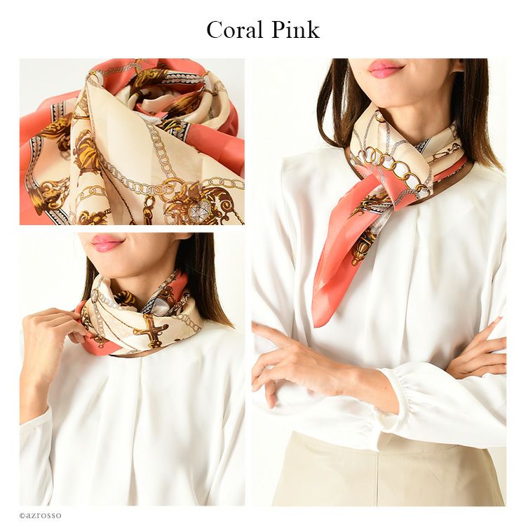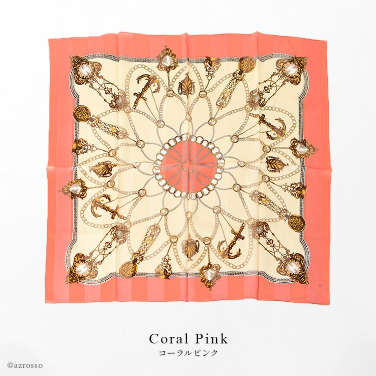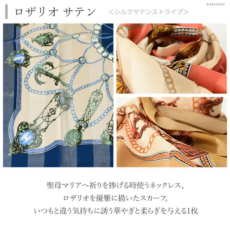 ロザリオ サテン シルク サテンストライプ 大判 スカーフ 90cm 日本製 正方形 ブランド 春夏 ロザリオ柄【通常ネコポス配送】