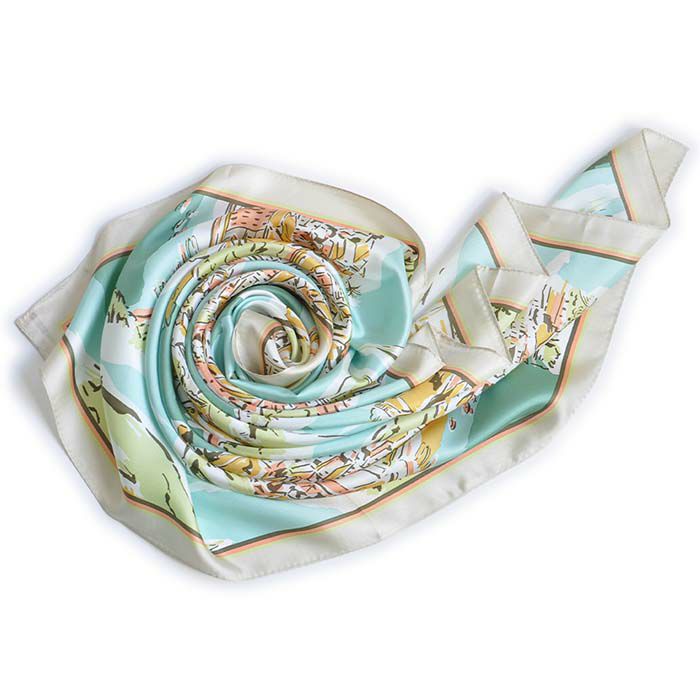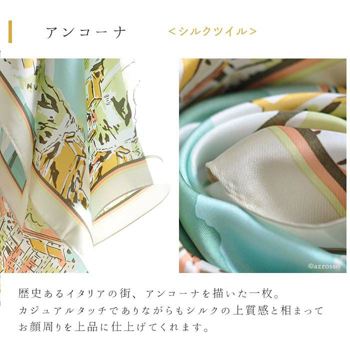 横浜スカーフ アンコーナ 90cm シルクツイル マリン柄 正方形 大判 シルク100% スーツ ジャケット ビジネス パーティ 日本製