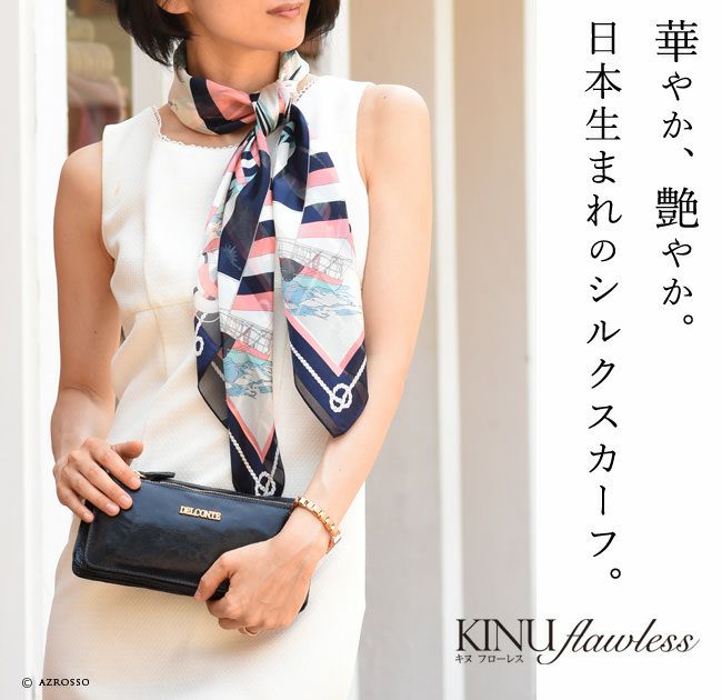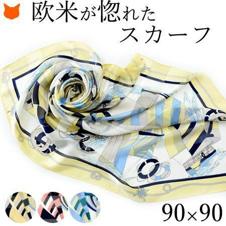 【継続新作】ヨット シルク100% サテン 横浜スカーフ 日本製 88×88 正方形 大判 マリン柄 春夏