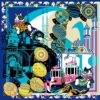 デンマークの首都コペンハーゲンをファンタジックに描いた美しいシルク100%スカーフ コペンハーゲン 人魚のいる街 .Y ドットワイ シルクツイルスカーフ 横浜スカーフ 日本製