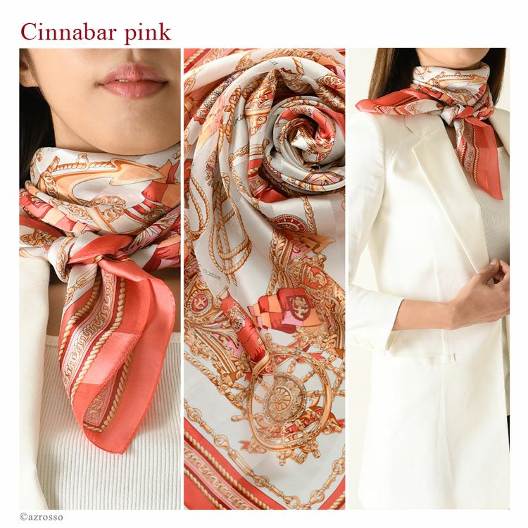 150年続く技法で紡ぐ横浜スカーフブランドKINU flawless(キヌ フローレス)のマリン柄シルクスカーフ「ロープアンカー」。誕生日プレゼント 母の日ギフトにもおすすめの大判正方形スカーフ 横浜スカーフ ロープアンカー スカーフ シルク 大判 90cm 正方形 シルク100% 日本製 サテン マリン柄 おしゃれ イエロー ピンク ネイビー