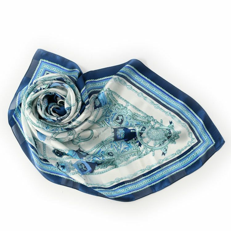 世界に誇る横浜スカーフブランドKINU flawless(キヌ フローレス)のマリン柄シルクスカーフ「マリンボーダー」。誕生日 母の日 敬老の日ギフトにもおすすめの正方形スカーフ マリンボーダー シルク ツイル スカーフ マリン柄 シルク100% 90cm×90cm 正方形 日本製 横浜スカーフ【通常ネコポス配送】