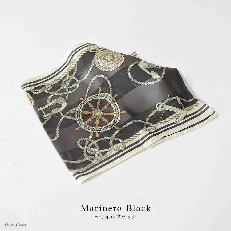 キヌフローレス マリン柄 世界最高水準の手捺染(プリント)技術で作った日本製スカーフ。母の日 誕生日 記念日 お母さん 彼女 妻 奥さん プレゼントにおすすめ 横浜スカーフ オレンジ ブルー ブラック ys9076ss17s/ シーサイドアベニューⅡ シルク サテン 大判 スカーフ 88x88 日本製 正方形 ブランド 春夏 マリン柄