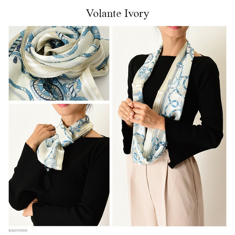 150年続く技法で紡ぐ横浜スカーフブランドKINU flawless(キヌ フローレス)のスヌードのように頭からかぶるだけで簡単装着出来るループタイプのシルクスカーフ「タイマリーナ」。母の日ギフトにもおすすめ 横浜スカーフ タイマリーナ ループスカーフ かぶるだけ マリン柄 シルク100% シルク スカーフ 薄手 uvカット 首 日よけ ブラック ホワイト アイボリー 日本製 おしゃれ【通常ネコポス配送】