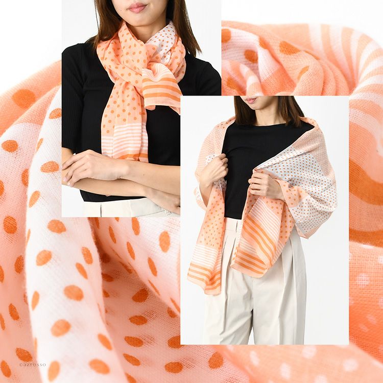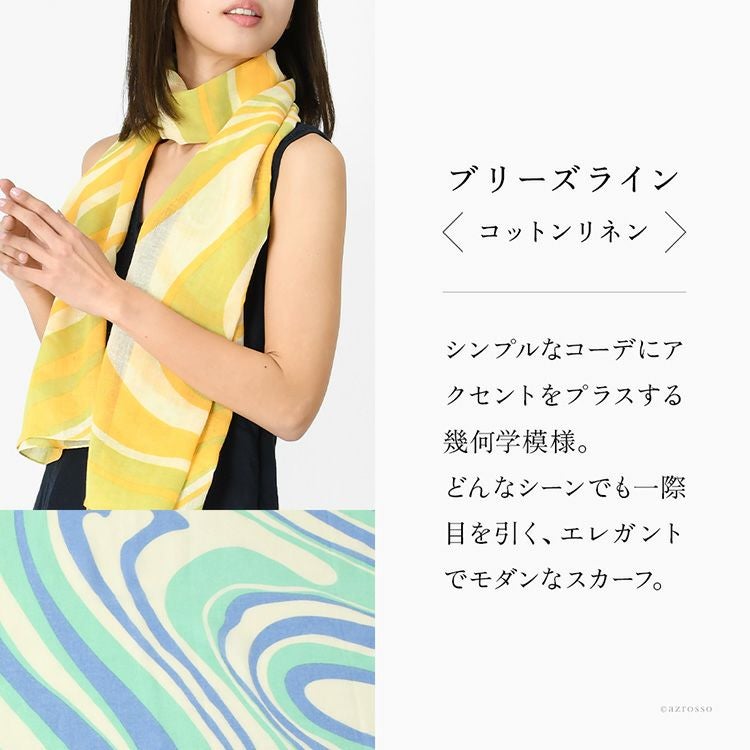 ブリーズライン コットン リネン ストール 幾何学模様柄 ドット 水玉 綿麻 55cm×180cm 長方形 日本製 横浜スカーフ【通常ネコポス配送】