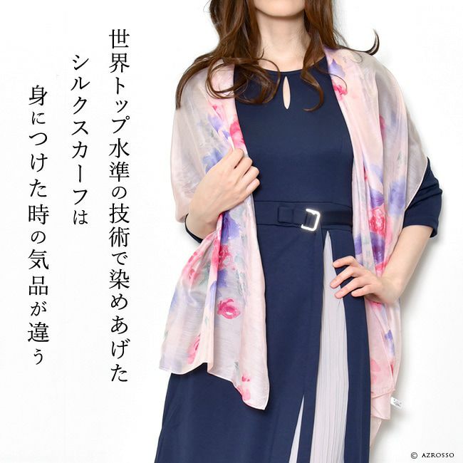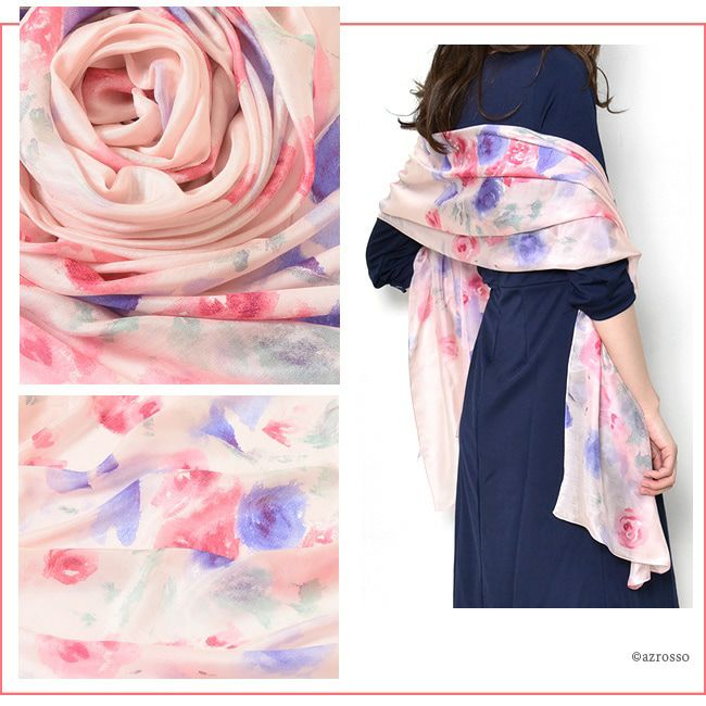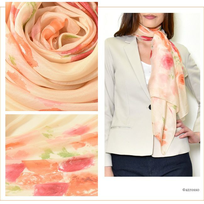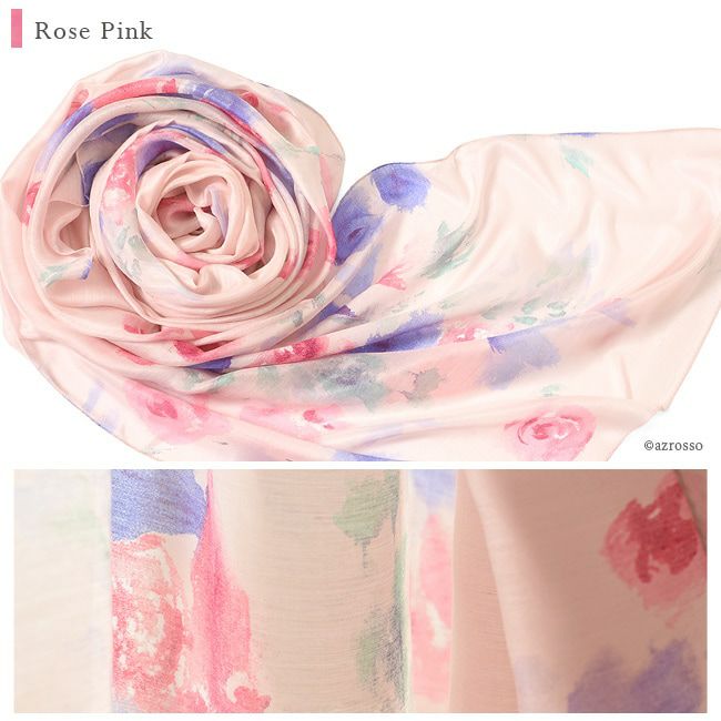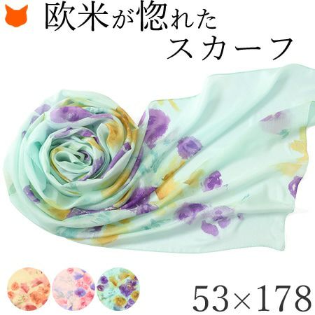 ローズシック シルクモダール 横浜スカーフ 日本製 53×178 長方形 バラ柄 花柄 ローズ柄 春夏