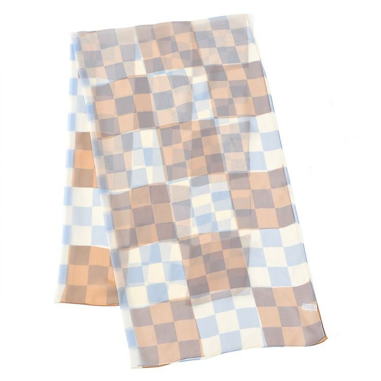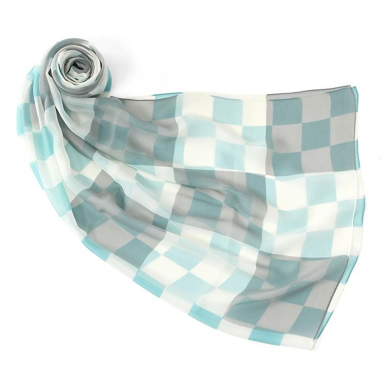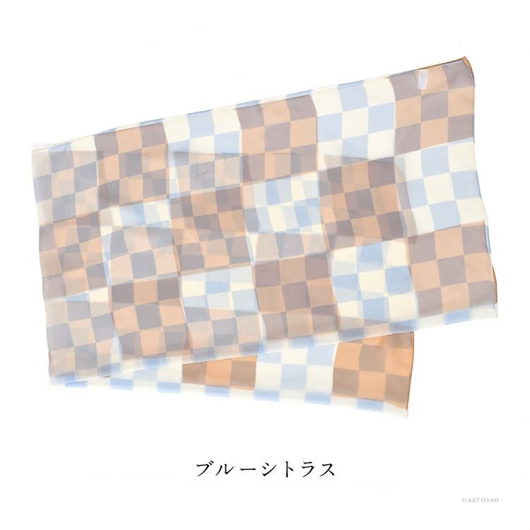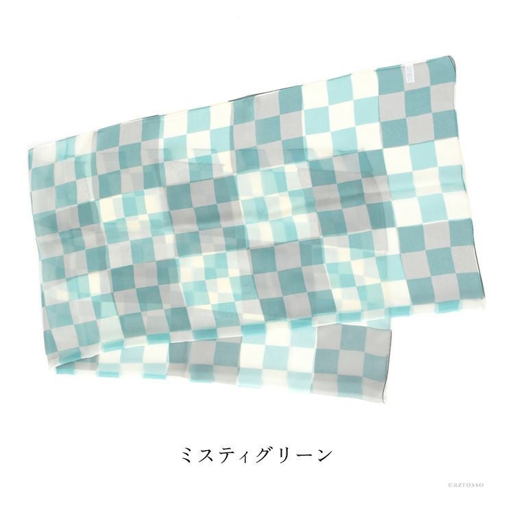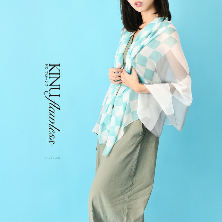 市松カット シルク シフォン ストール 幾何学模様柄 シルク100% 95cm×170cm 長方形 日本製 横浜スカーフ 【通常ネコポス配送】