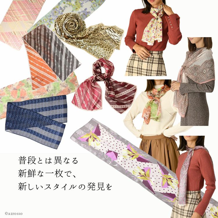 スカーフ:シルク100%(ツイル・サテン・シフォン等からランダム)
