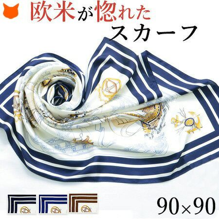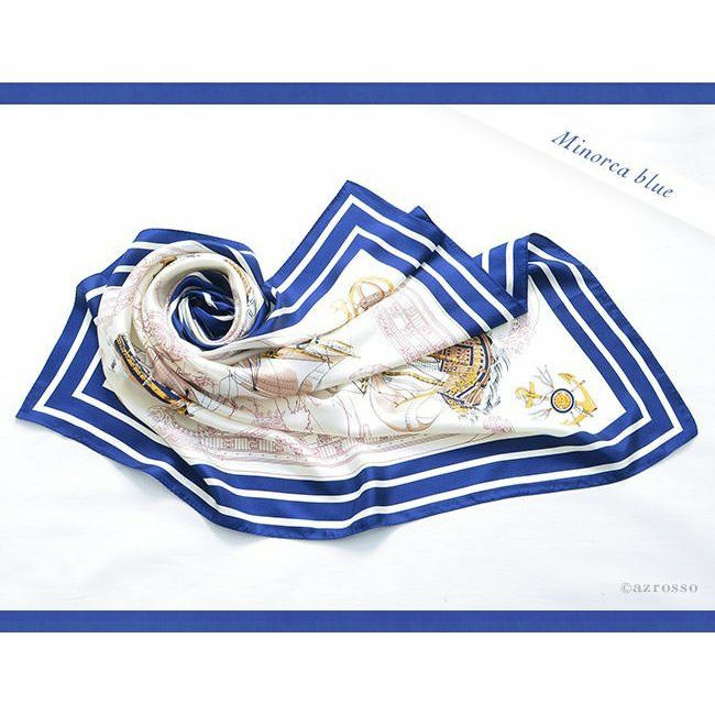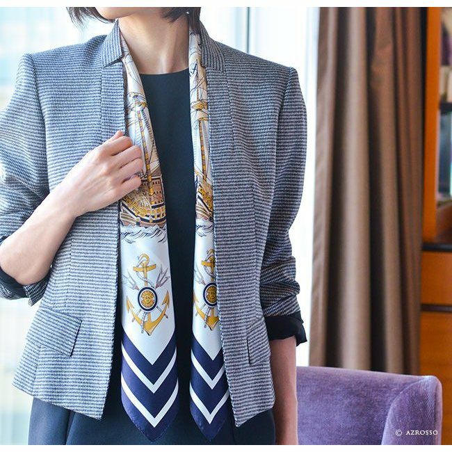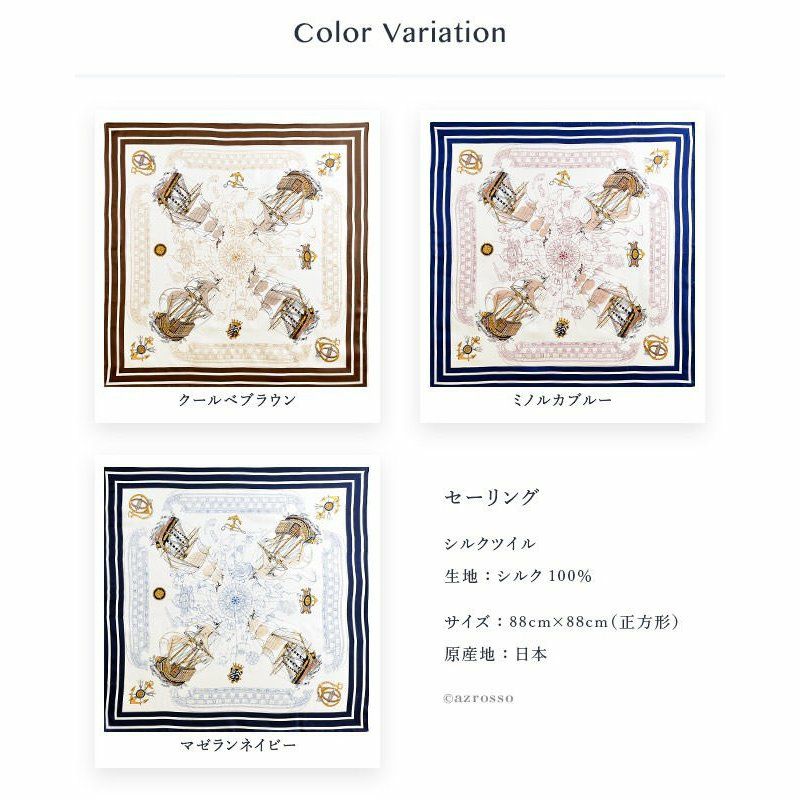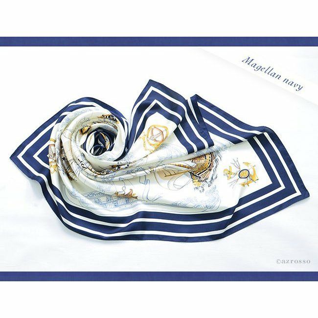 セーリング ツイル シルクスカーフ マリン柄 88x88cm 日本製 大判 正方形 ブランド 春夏 海 ヨット 碇 イカリ