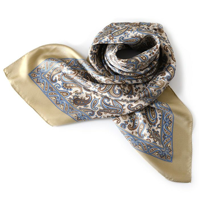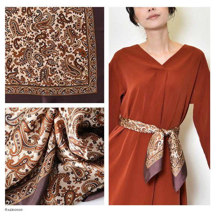 手捺染で仕上げたスカーフは肌触りと光沢を含む上質な仕上がりになります。また、裏表の区別がつきにくいところも特徴です。