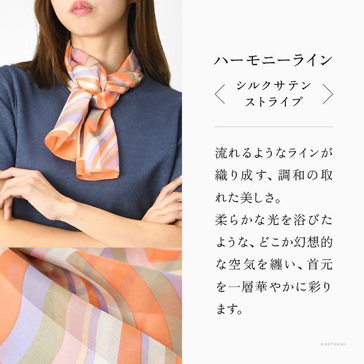 ハーモニーライン シルク サテン ストール 幾何学模様柄 シルク100% 30cm×130cm 長方形 日本製 横浜スカーフ 【通常ネコポス配送】