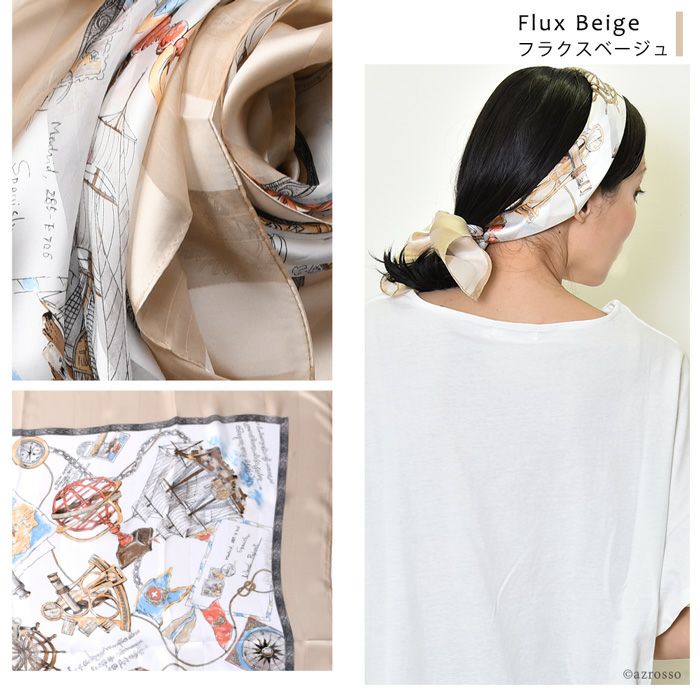 手捺染で仕上げたスカーフは肌触りと光沢を含む上質な仕上がりになります。また、裏表の区別がつきにくいところも特徴です。