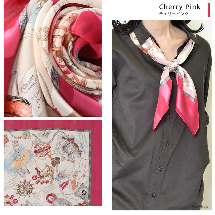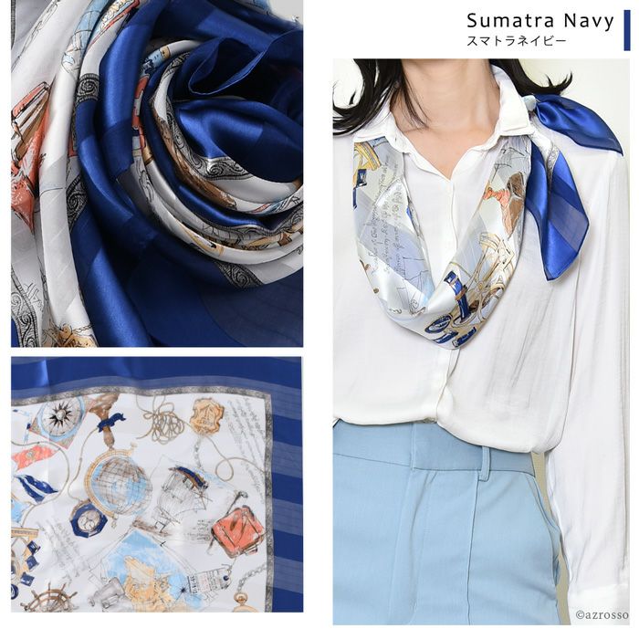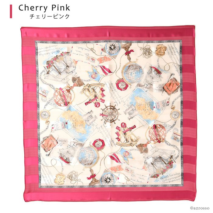 航海で使うツールをスケッチ風に描かれたシルクスカーフ「アドベンチャー」。