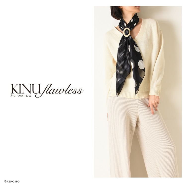 横浜の職人が仕立てるの国産シルクスカーフ。上質なサテン地に映えるドット柄が華やかで、大人の装いに品を添える一枚。90cmの大判サイズでアレンジ自在。シルク100%の滑らかな肌触り キヌフローレス 横浜スカーフ 日本製 シルク100% 大判スカーフ パッチ水玉 ドット柄 90cm サテン プレゼント ギフト対応