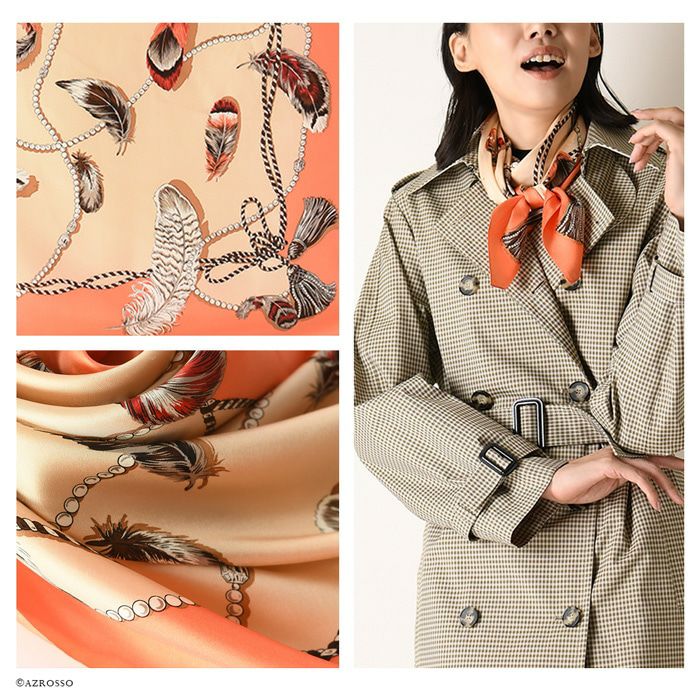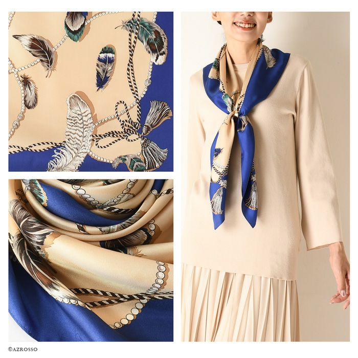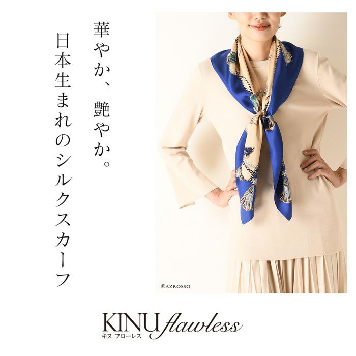 世界トップクラスの技術で紡ぐスカーフブランド キヌフローレス(KINU flawless) 深みのあるカラーが美しい エルメス柄正方形スカーフ 肌寒い時や紫外線予防にも アンリード スカーフ シルクサテンストライプ 横浜スカーフ 日本製 90×90 正方形 大判 エルメス柄