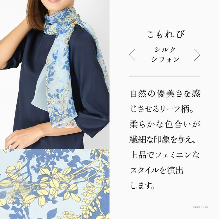 こもれび シルク シフォン リーフ柄 シルク100% 45cm×160cm 日本製 横浜スカーフ【通常ネコポス配送】