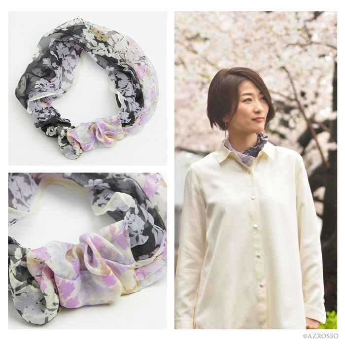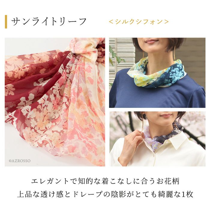 シルクシフォン リング ネックレス サンライトリーフ 日本製 横浜スカーフ 紫外線よけ、UVカット、お首のシワ隠しにも