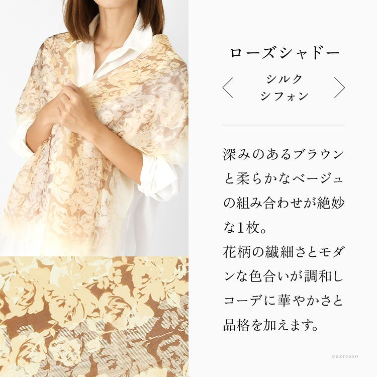 ローズシャドー シルク シフォン 花柄 シルク100% 45cm×160cm 日本製 横浜スカーフ【通常ネコポス配送】