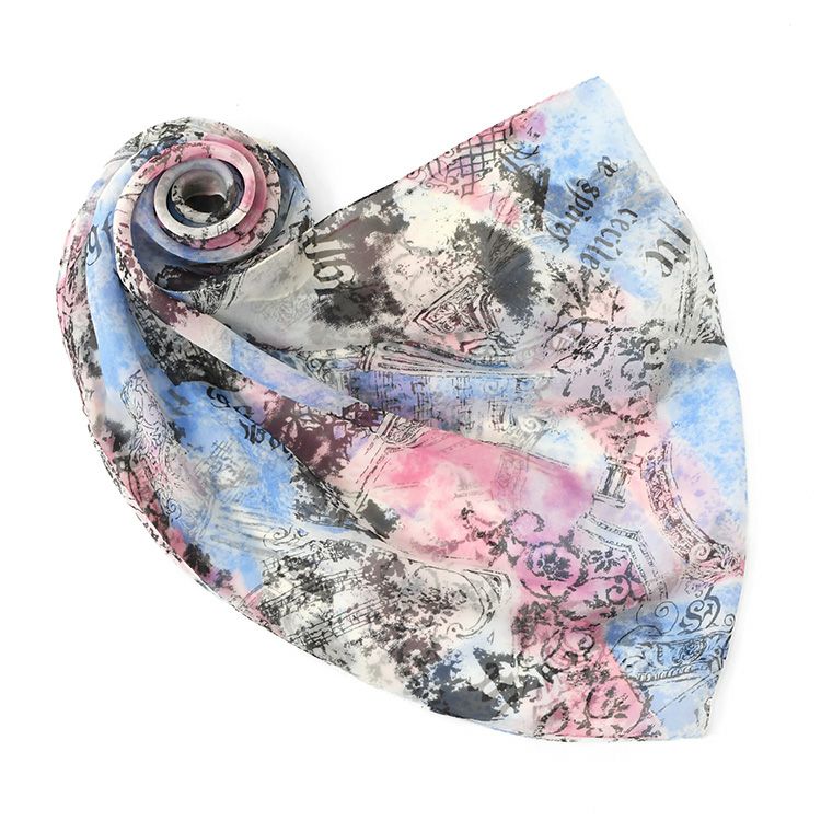 ローマ シルク シフォン ストール 町並み・景色柄 シルク100% 45cm×160cm 長方形 日本製 横浜スカーフ【通常ネコポス配送】