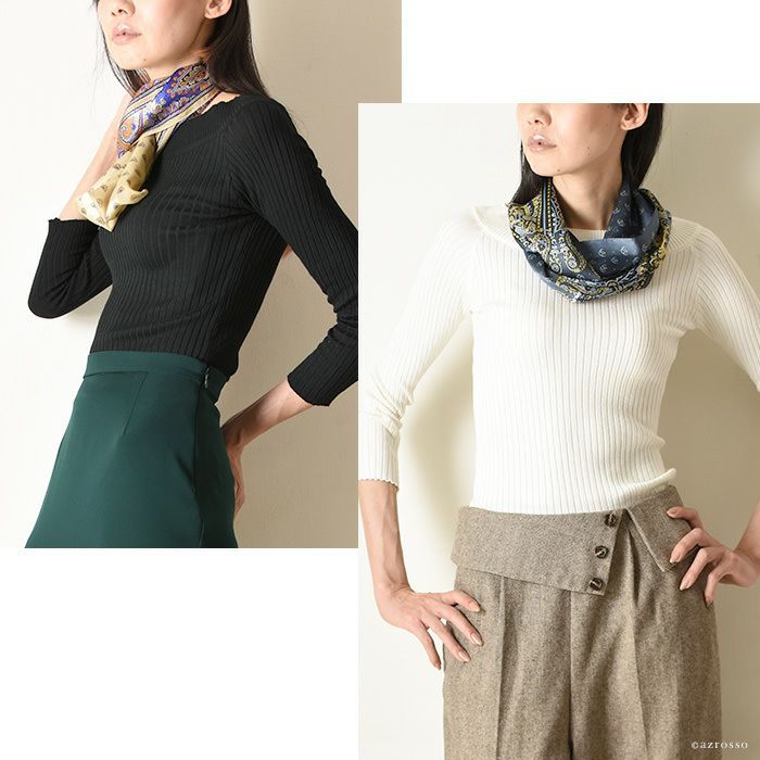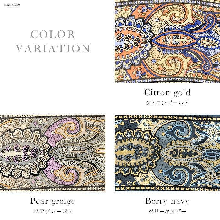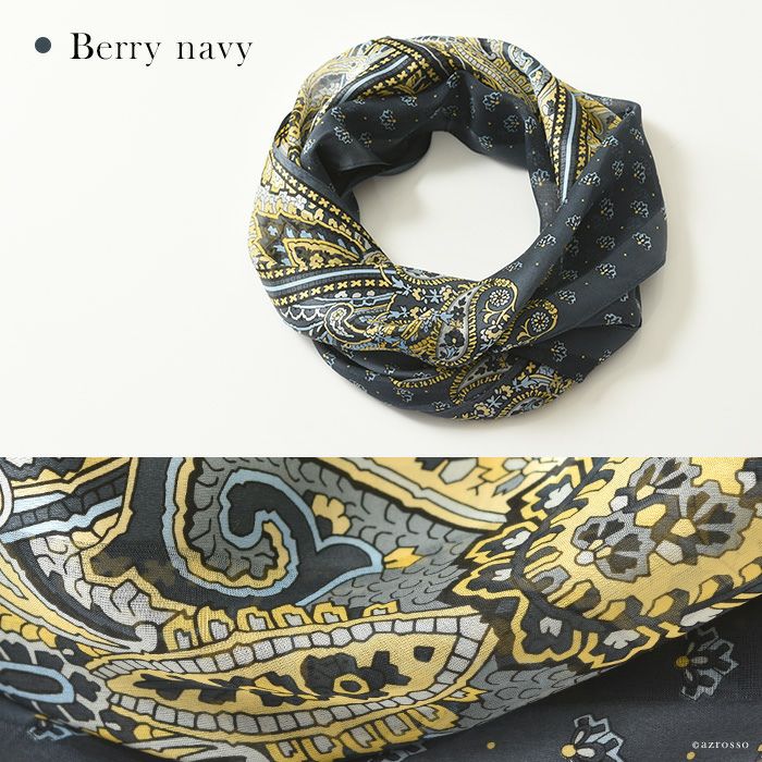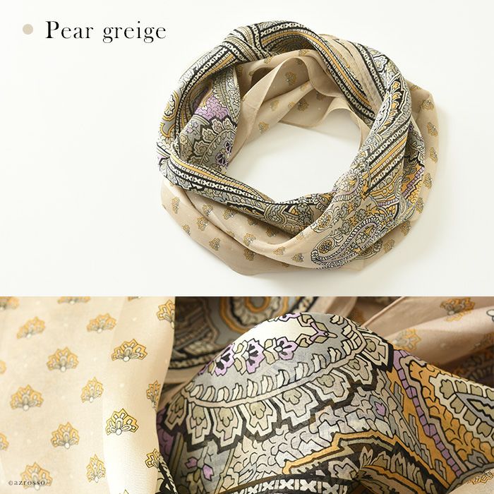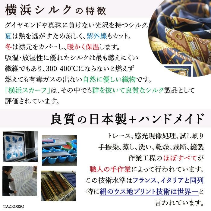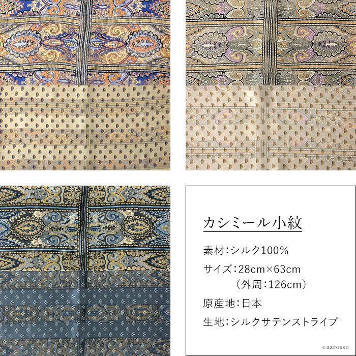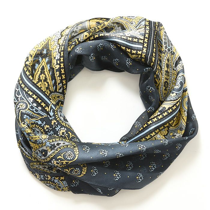 カシミール小紋 横浜スカーフ 日本製 シルクスカーフ 大判 ループタイプ ストール ゴールド ベージュ ネイビー