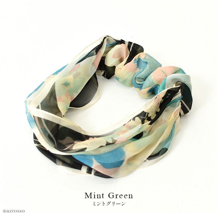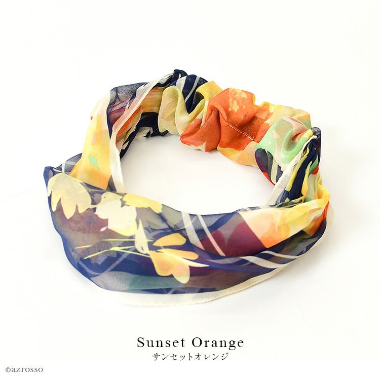 横浜スカーフ フレームフラワー リングスカーフ かぶるだけ シルク100% シルク シフォン スカーフ 薄手 小さめ uvカット 首 日よけ ヘアアクセサリー ピンク オレンジ グリーン 緑 ブルー 青 日本製 おしゃれ【通常ネコポス配送】