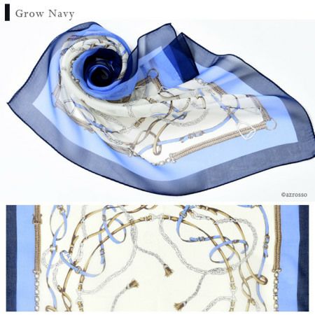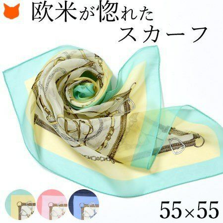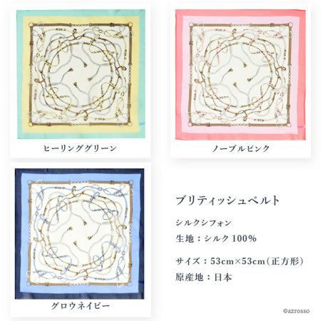 ブリティッシュベルト シルク100% シフォン 横浜スカーフ 日本製 53x53 正方形 プチ エルメス柄 春夏ミニサイズ