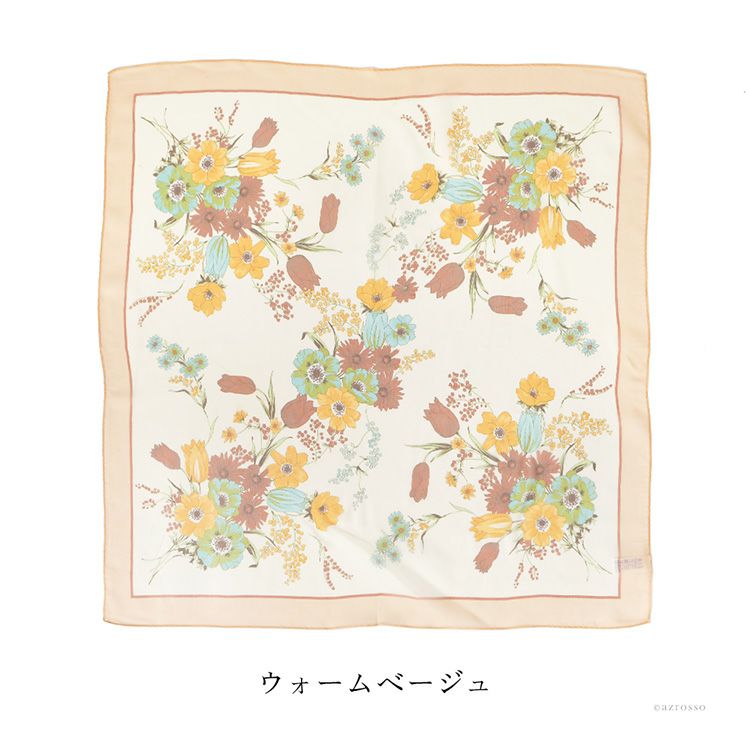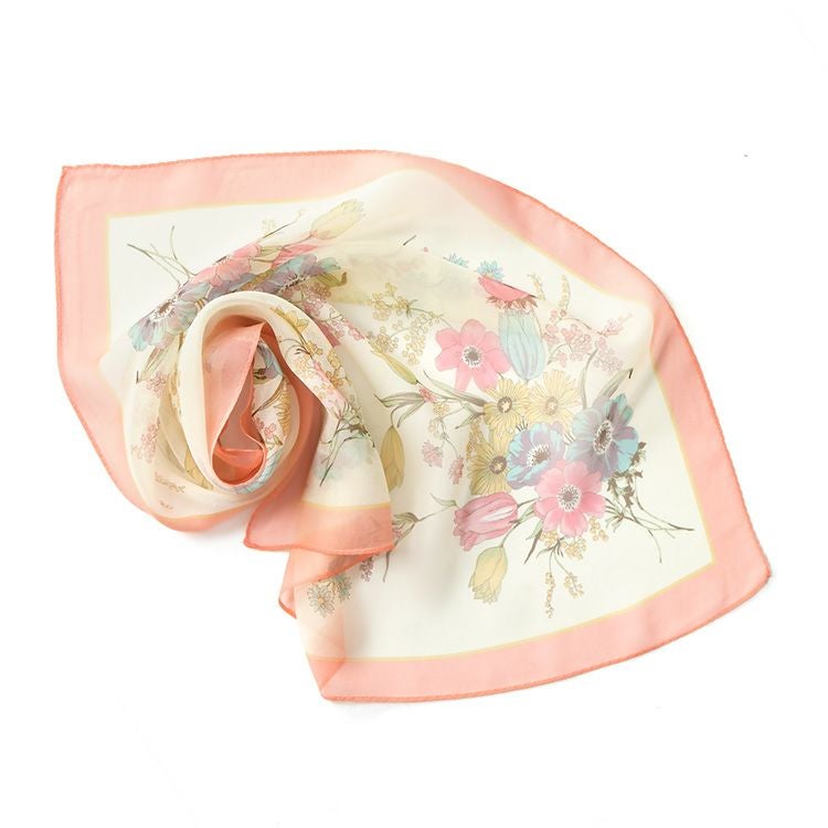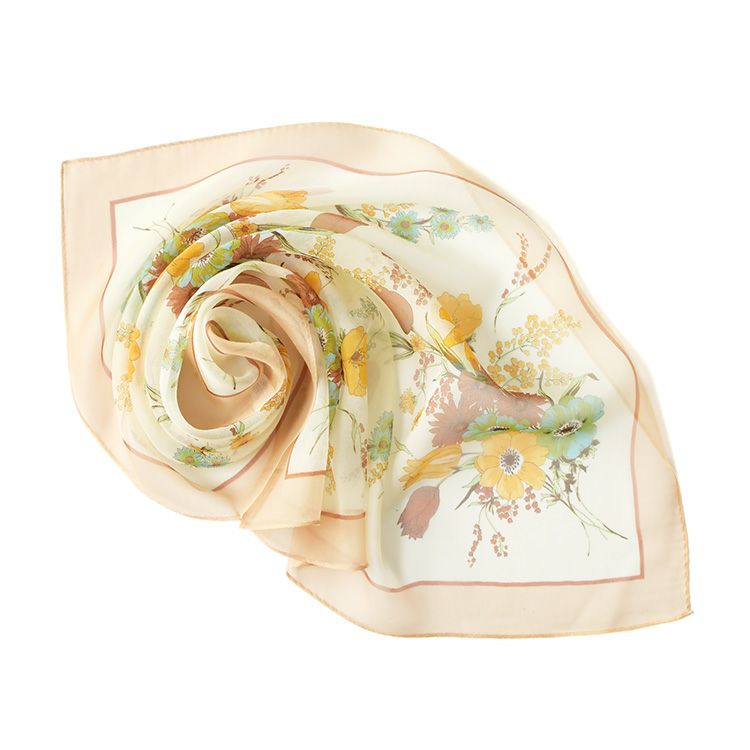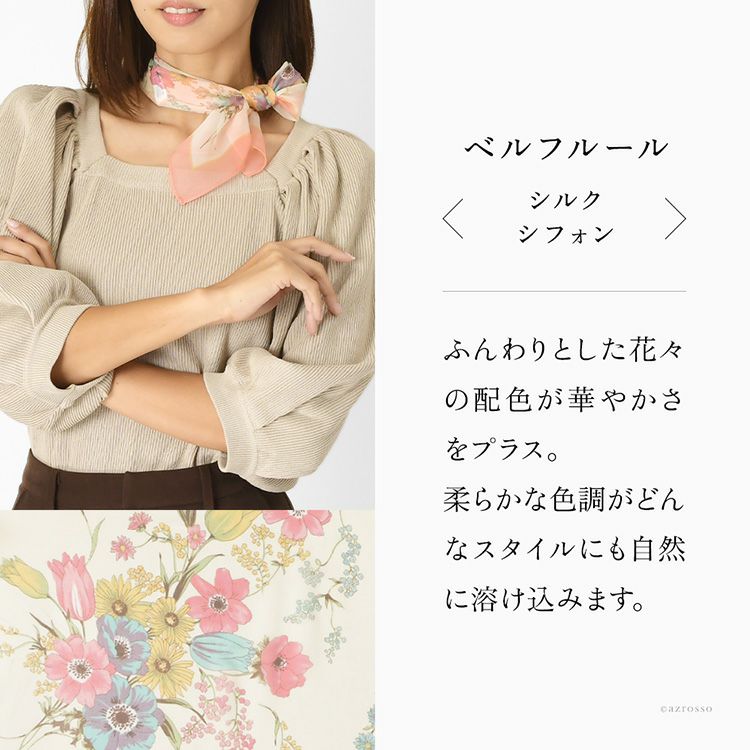 ベルフルール シルク シフォン 花柄 シルク100% 55cm×55cm 日本製 横浜スカーフ【通常ネコポス配送】