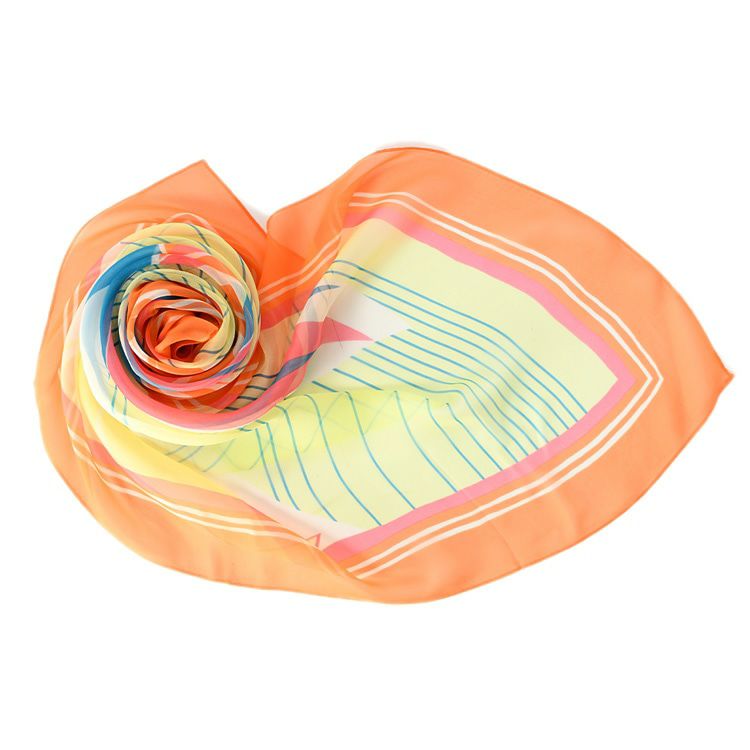 横浜スカーフ エンジェルフィッシュ スカーフ シルク 大判 90cm 正方形 シルク100% 日本製 シフォン ストライプ 魚 おしゃれ オレンジ ピンク ブルー