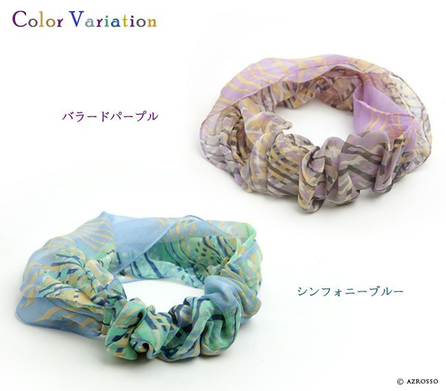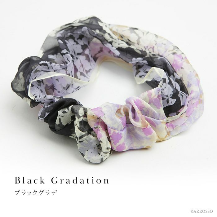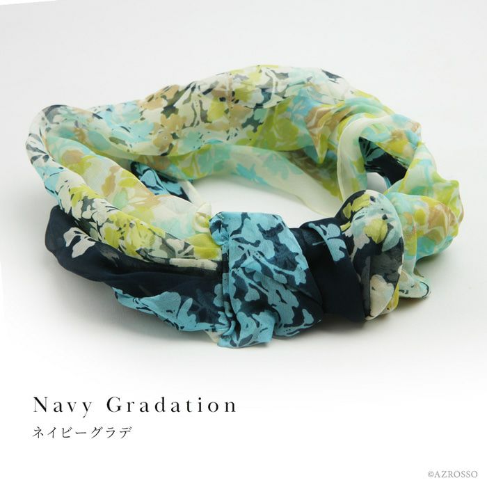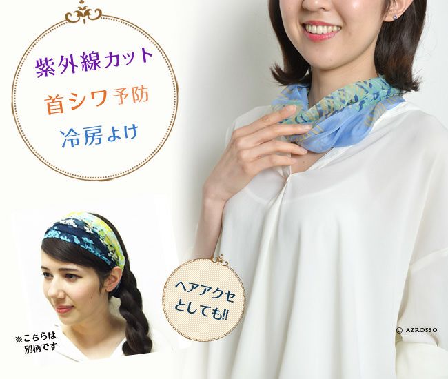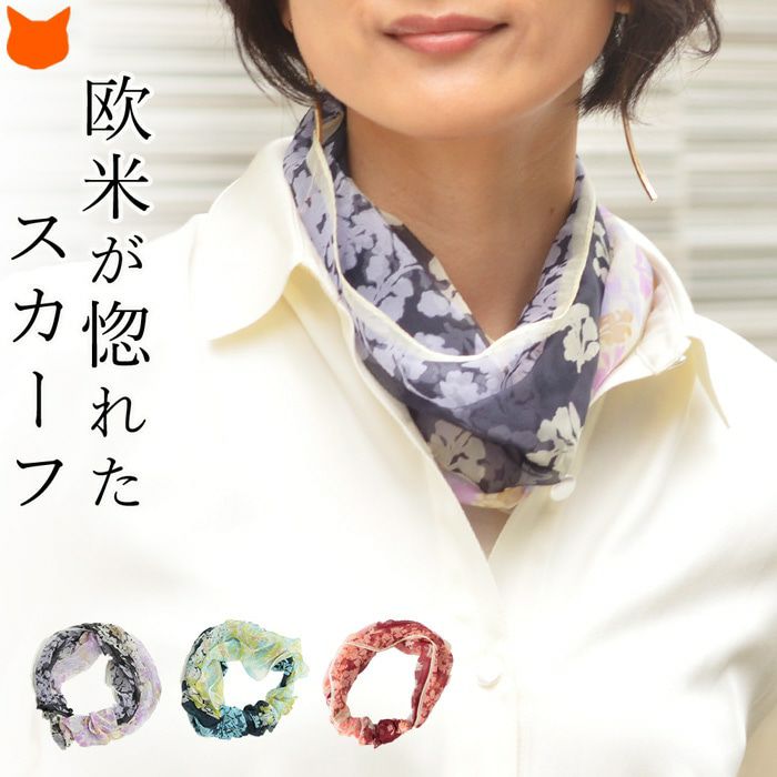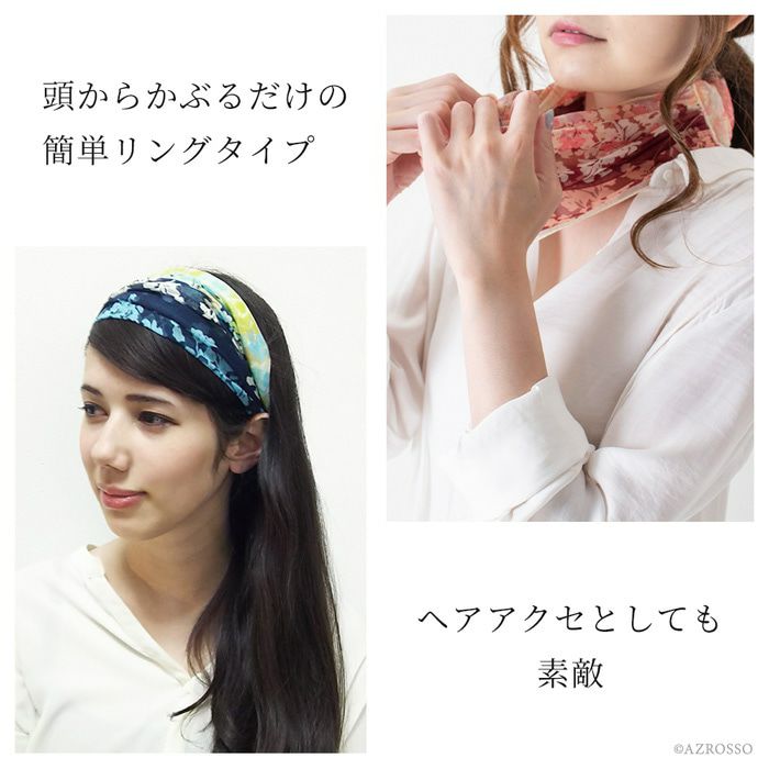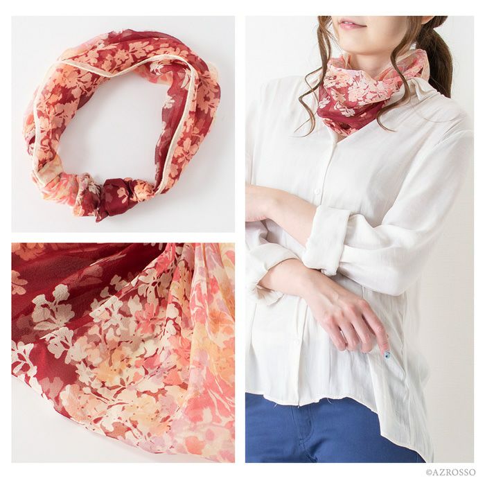 上品な花柄 日本製のシルク100% 首元をお洒落に彩るネックレススカーフ 母の日、敬老の日、お母さん、義母、祖母へのプレゼントにもおすすめ シルクシフォン リング ネックレス サンライトリーフ 日本製 横浜スカーフ 紫外線よけ、UVカット、お首のシワ隠しにも
