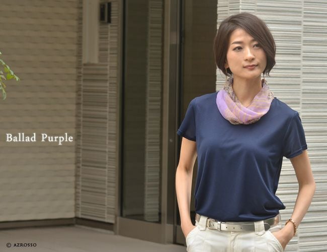 日本製のシルク100% 首元をお洒落に彩るネックレススカーフ 母の日、敬老の日、お母さん、義母、祖母へのプレゼントにもおすすめ シルクシフォン リング ネックレス ブリーズチェック 日本製 横浜スカーフ 紫外線よけ、UVカット、お首のシワ隠しにも