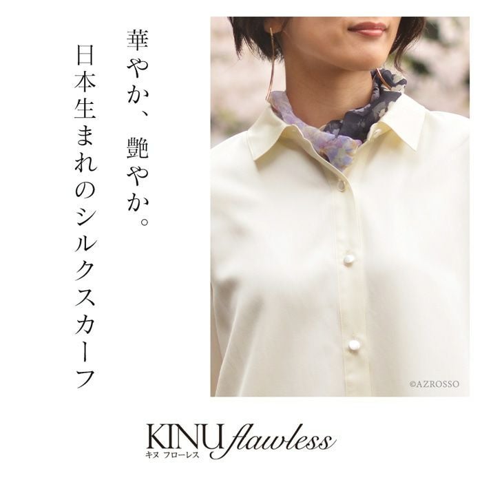 世界に誇る横浜スカーフブランドKINU flawless(キヌ フローレス)の花柄シルクスカーフ「ベルフルール」。誕生日 敬老の日ギフトにもおすすめの正方形スカーフ ベルフルール シルク シフォン 花柄 シルク100% 55cm×55cm 日本製 横浜スカーフ【通常ネコポス配送】