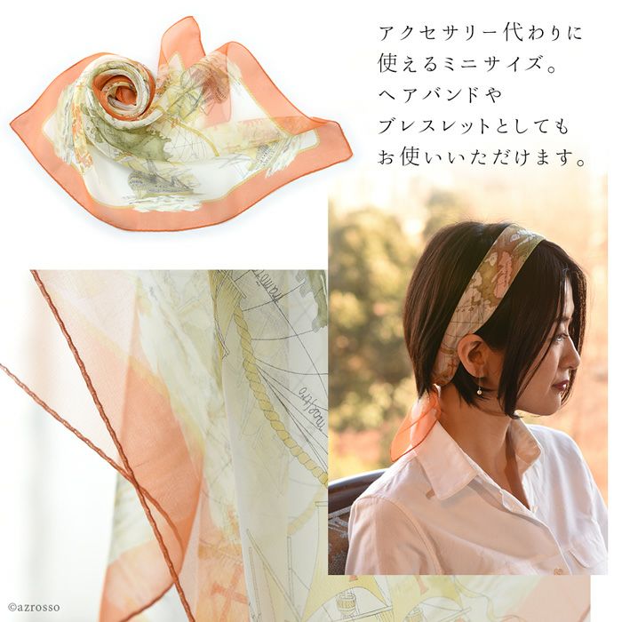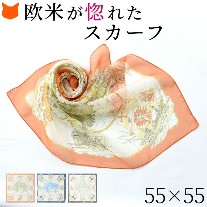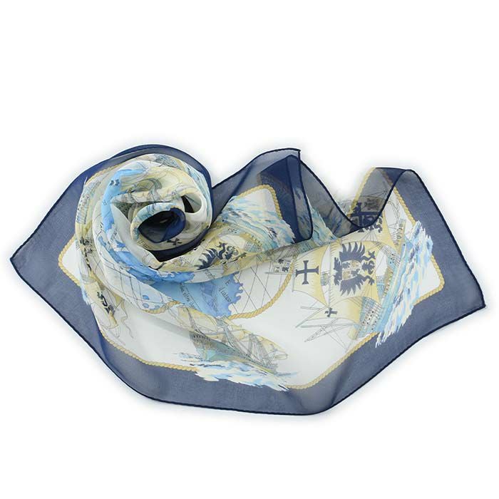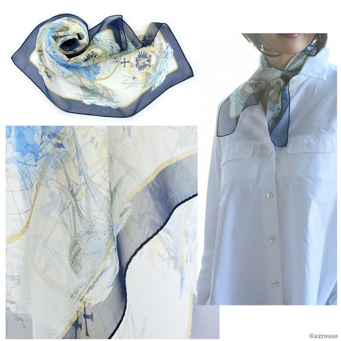 世界トップレベルの技法で紡ぐ横浜スカーフ シルク 日本製 巻き方 結び方 母の日 誕生日 プレゼント 女性 スーツ 仕事 ブランド 着こなし 春 夏 秋 ys6048sc18s/ 横浜スカーフ セーリングチャート 55cm シルクシフォン マリン柄 地図柄 正方形 ミニ 小判 シルク100% スーツ ジャケット ビジネス パーティ 日本製