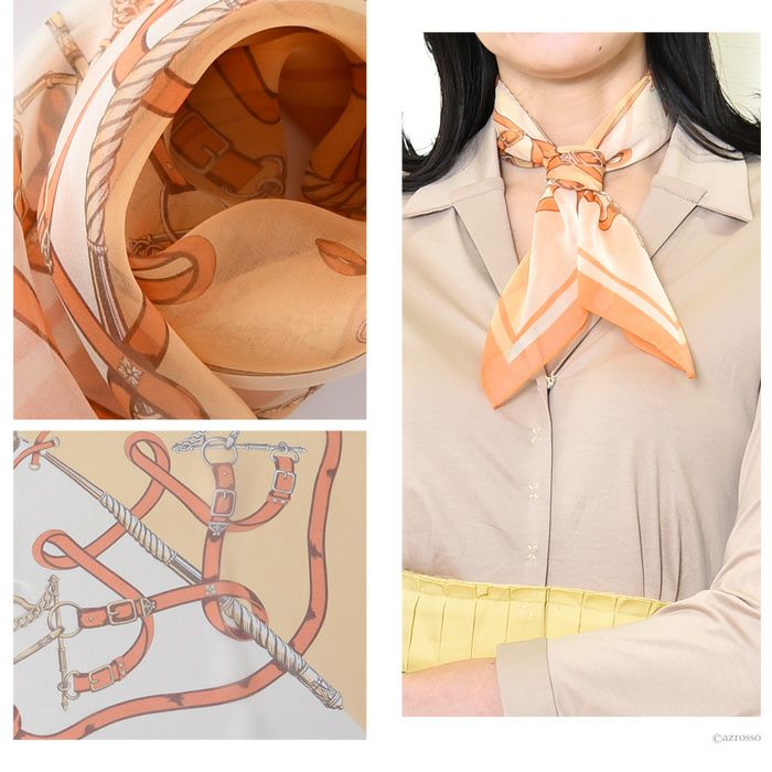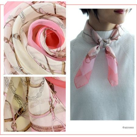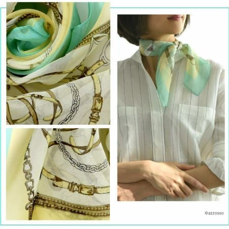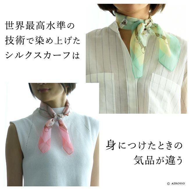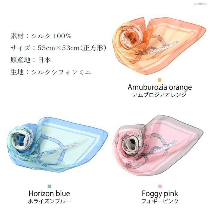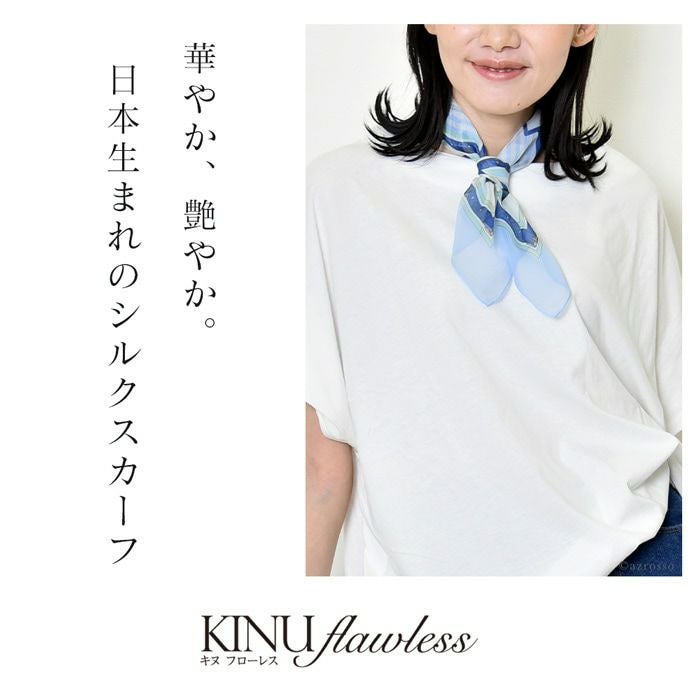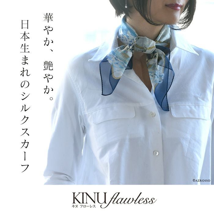 世界トップクラスの技術で紡ぐスカーフブランド キヌフローレス(KINU flawless) シルクシフォン 首しわ予防や紫外線対策にも ブリティッシュベルト シルク100% シフォン 横浜スカーフ 日本製 53x53 正方形 プチ エルメス柄 春夏ミニサイズ