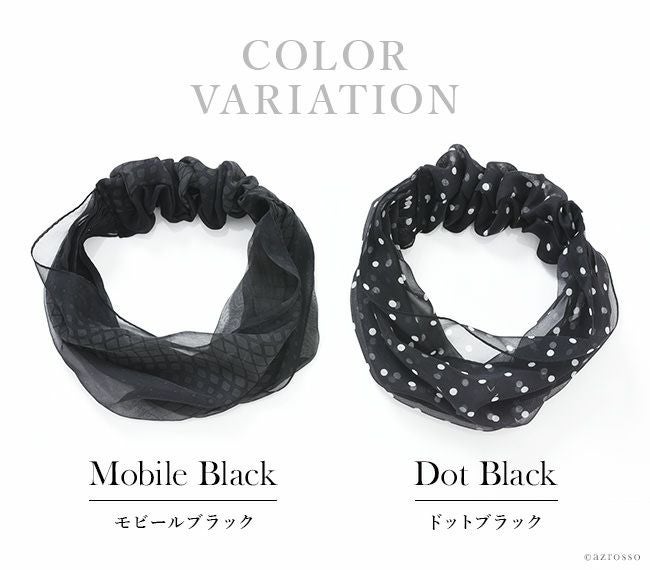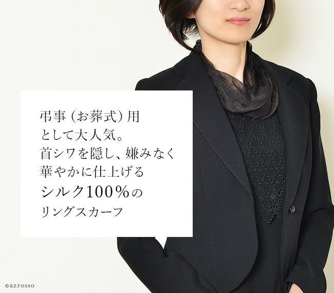 ゴムつきなので簡単、しかも崩れない。冠婚葬祭で便利なフォーマルユースのリングスカーフ お母さんやおばあちゃんへのプレゼント&ギフトにも最適/ リングタイプの黒いシルクスカーフ 急な弔事(法事・葬儀・おくやみの席)で役立ちます。紫外線カットや首しわ隠しにも便利 横浜スカーフ 日本製 シルク100%