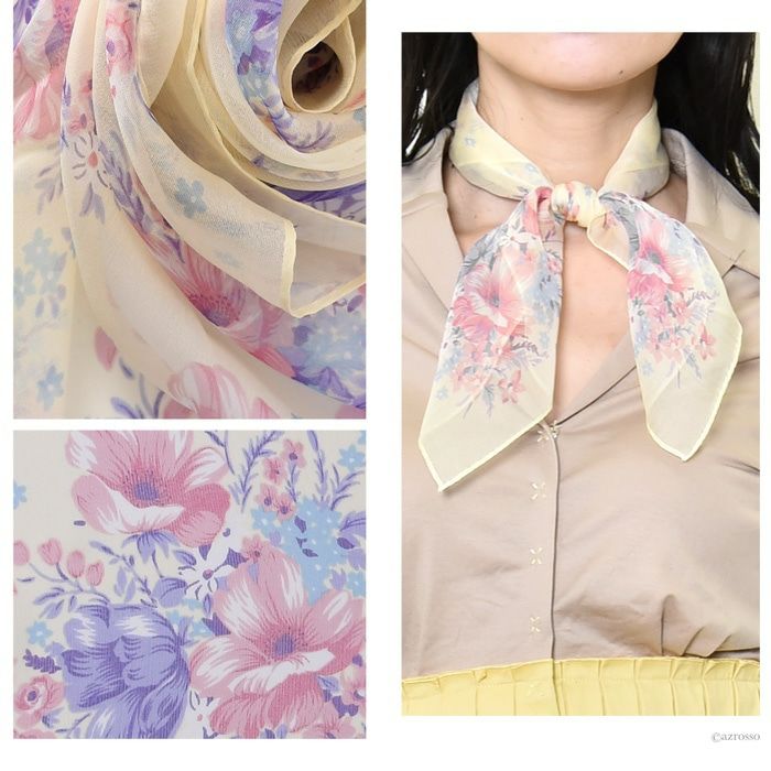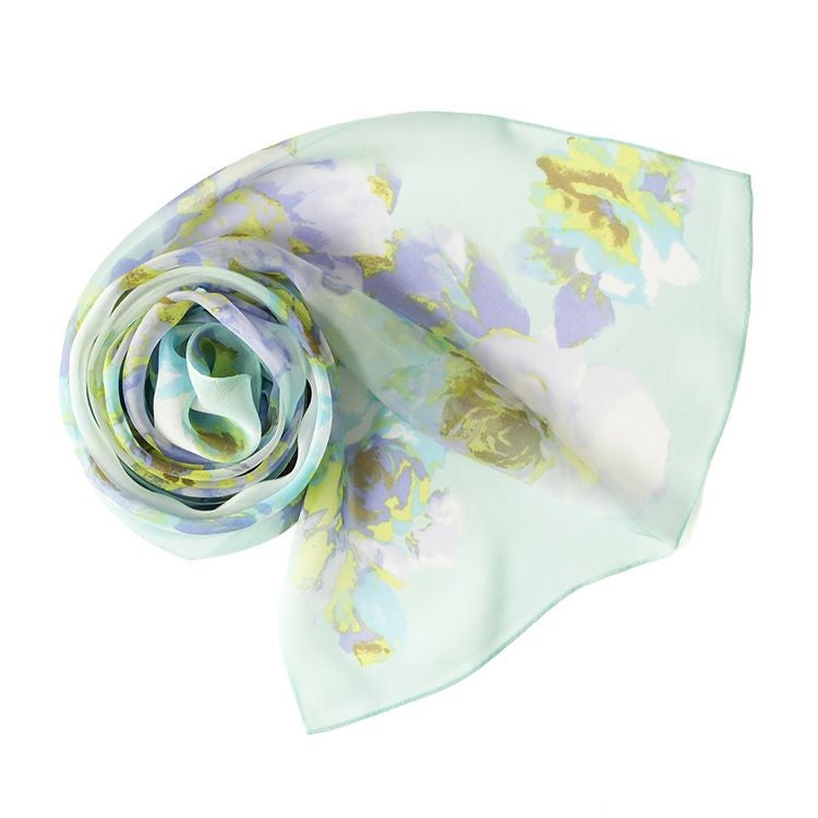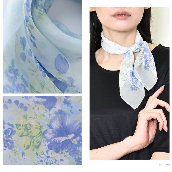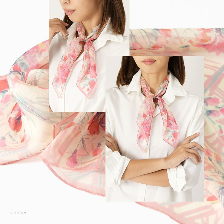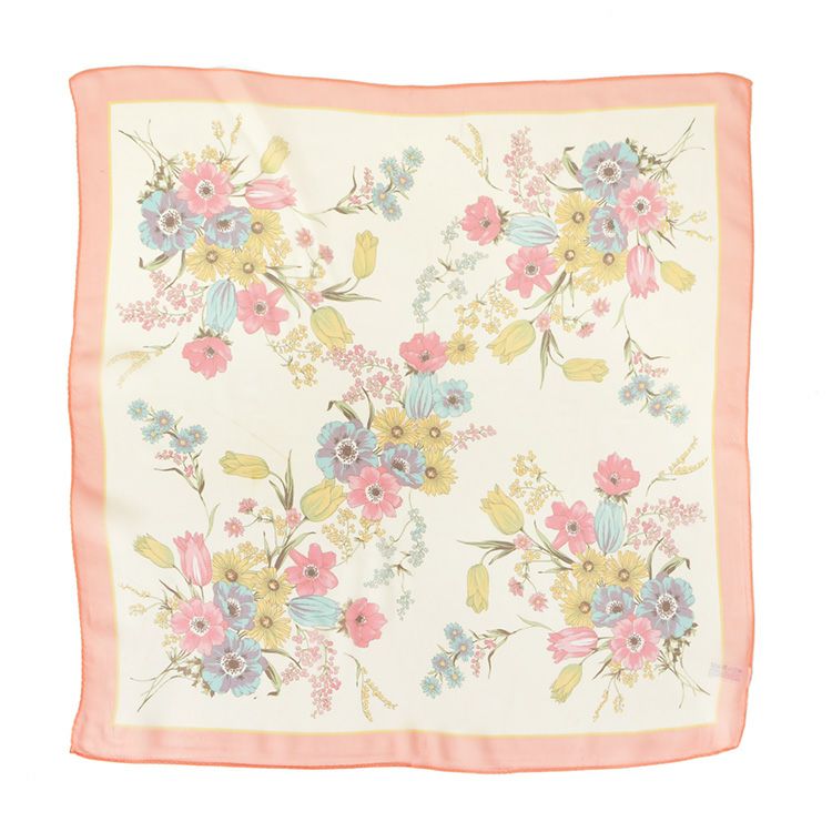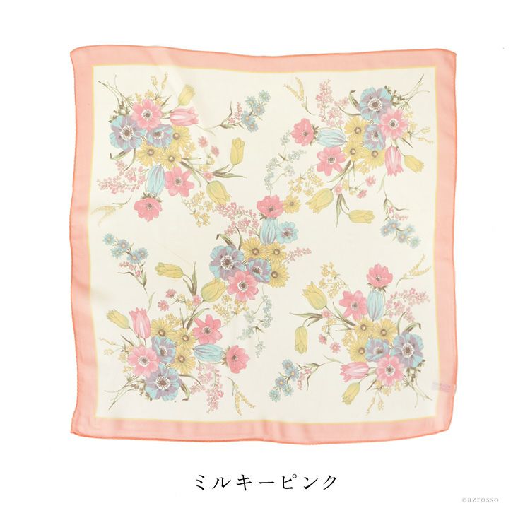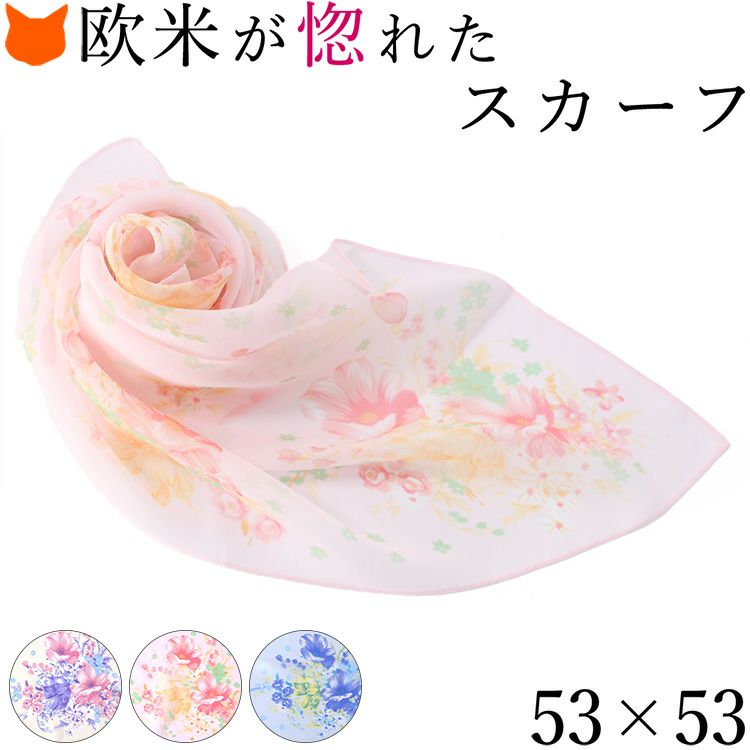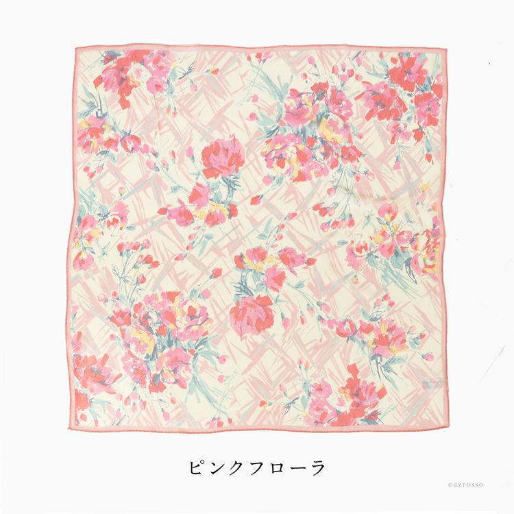 55×55|キヌフローレス(KINU flawless) の可憐な花柄が上品なシルクスカーフ。母の日、敬老の日、女性への誕生日プレゼントにも ガレット 横浜スカーフ シルクシフォンミニ 花柄 日本製 シルクスカーフ プチ ミニサイズ スカーフ 正方形 シルク100% 53×53cm