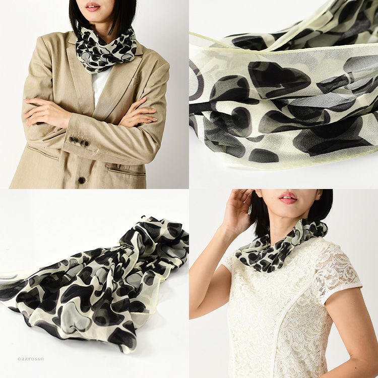 大人の装いにマッチする甘くないハート柄シルクスカーフ「フルハート」。頭からかぶるだけで簡単装着出来るリングタイプ。横浜スカーフブランドのシルク100%スカーフは誕生日や母の日ギフトに最適 フルハート シルク シフォン リングスカーフ かぶるだけ ハート柄 シルク100% 薄手 日本製 横浜スカーフ【通常ネコポス配送】
