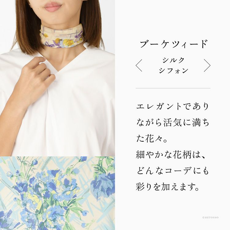 世界に誇る横浜スカーフブランドKINU flawless(キヌ フローレス)の花柄シルクスカーフ「ブーケツィード」。誕生日 敬老の日ギフトにもおすすめの正方形スカーフ ブーケツィード シルク シフォン 花柄 シルク100% 55cm×55cm 日本製 横浜スカーフ【通常ネコポス配送】