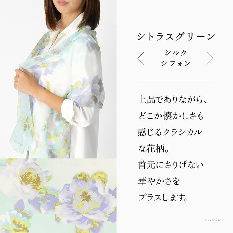 世界に誇る横浜スカーフブランドKINU flawless(キヌ フローレス)の花柄シルクスカーフ「シャインローズ」。誕生日 敬老の日ギフトにもおすすめの長方形スカーフ シャインローズ シルク シフォン 花柄 シルク100% 45cm×160cm 日本製 横浜スカーフ【通常ネコポス配送】