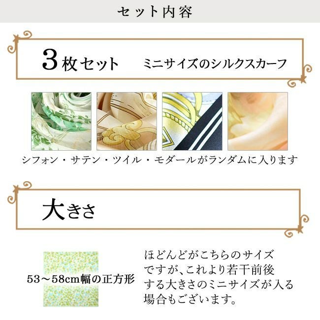 アウトレット 日本製シルクスカーフ 3枚セット おまかせだからお得 横浜スカーフ 【キャンセル・返品・交換不可】【ページ内注意事項必ずご確認下さい】【ラッピング不可】【通常ネコポス配送】