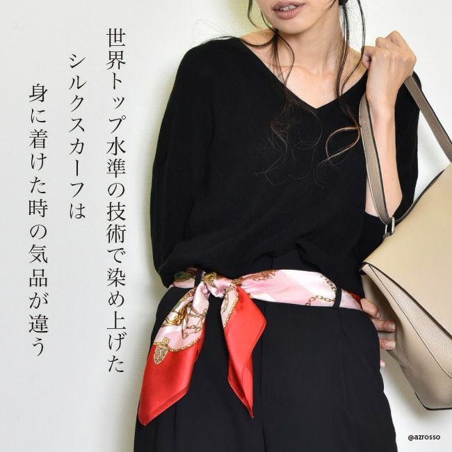 ハッカモア スカーフ シルク100% サテンストライプ 横浜スカーフ 日本製 88×88 正方形 大判 チェーン