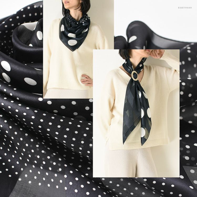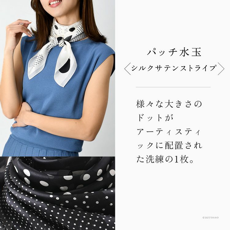 キヌフローレス 横浜スカーフ 日本製 シルク100% 大判スカーフ パッチ水玉 ドット柄 90cm サテン プレゼント ギフト対応