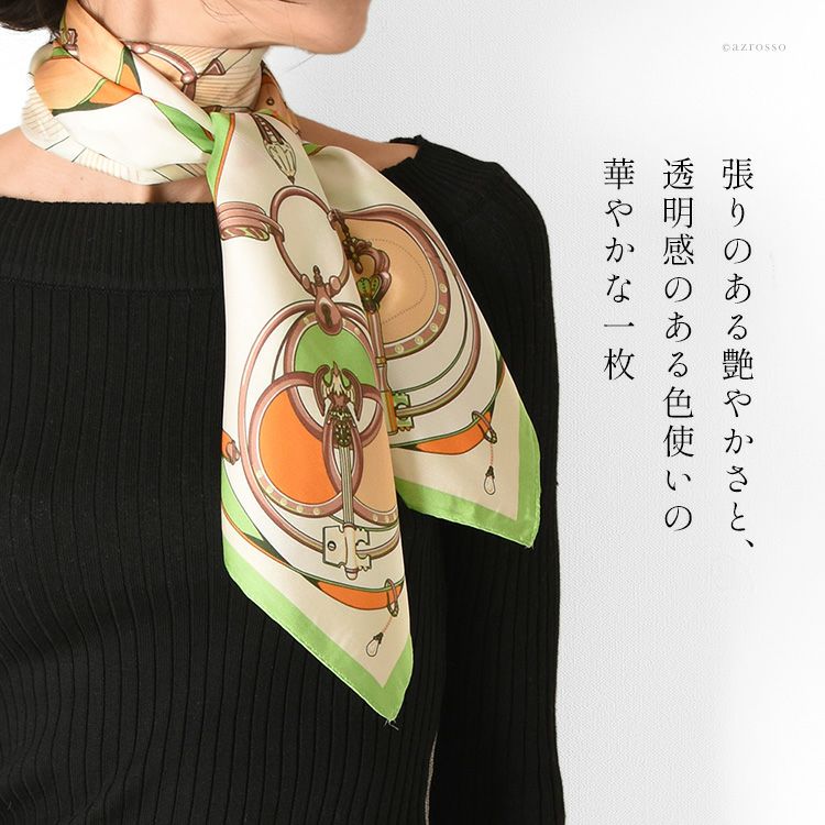 スカーフ シルク 100 日本製 大判 ブランド 正方形 横浜 スカーフ レディース セレモニー 卒業式 入学式 フォーマル シルクツイル ベルト柄 おしゃれ
