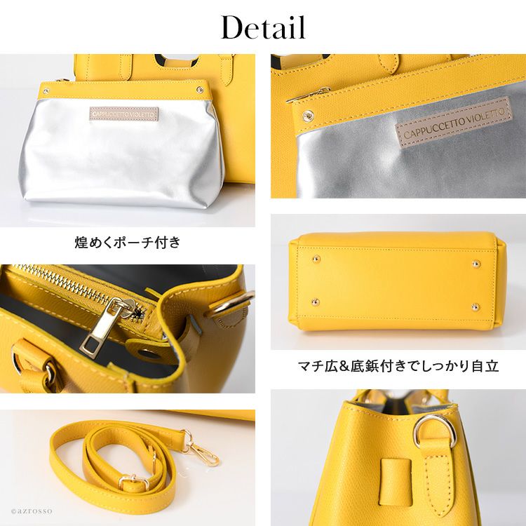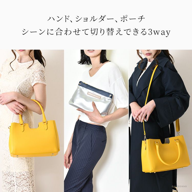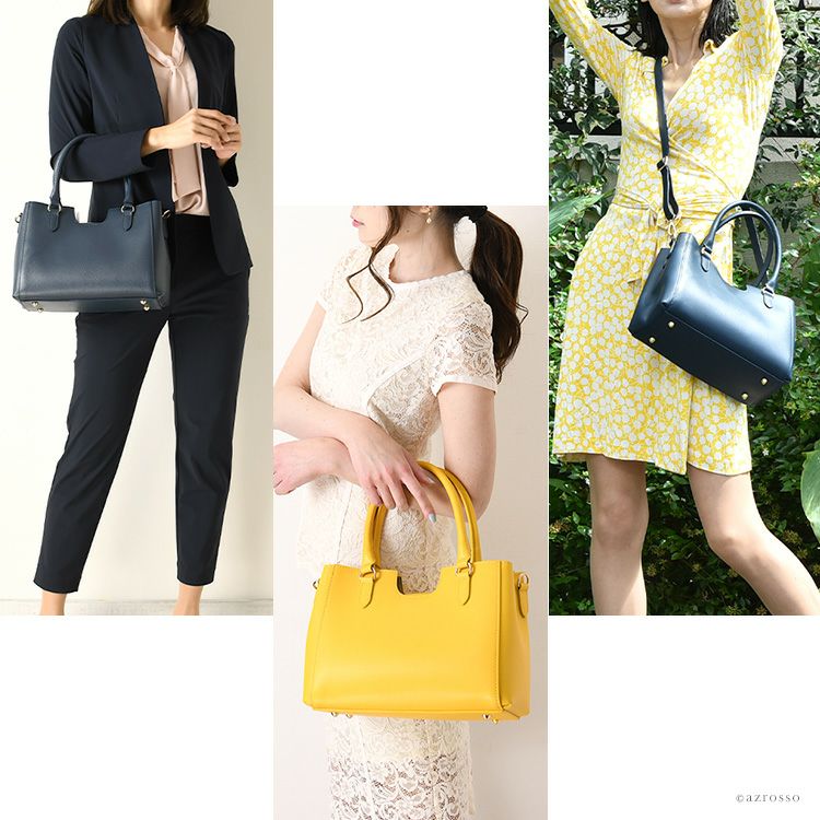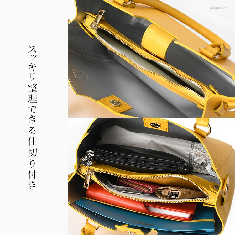 レザー ハンドバッグ ビジネス 3way ショルダー付き 本革 ネイビー イエロー イタリア製 ブランド カプチェット ヴィオレット Cappuccetto Violetto Alcazar アルカサル ビジネス バッグ
