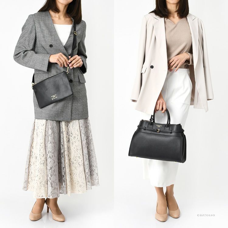 ▼特徴:ミニトートバッグ イタリア ブランド レザーショルダー バッグ 革 ポーチ付き 斜め掛け フォーマルバッグ ブラック 2個持ち バッグ セット きれいめ おしゃれ